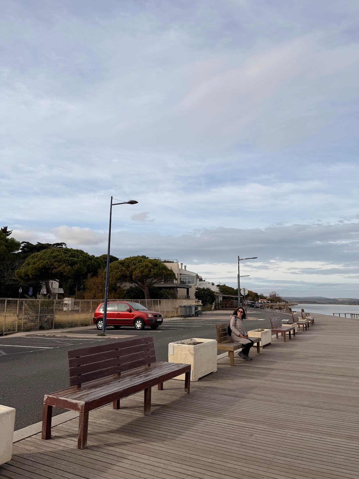 Aracı 5 dakika yürüme mesafesindeki sahildeki ücretsiz bir park yerine bıraktık. Ancak görevliler, Barcarès Noel pazarı için herkesi ilerideki ücretli park alanına yönlendirmeye çalışıyordu. Döndüğümüzde, halk park alanına hızlıca parkı engellemek için şerit çektiklerini gördük; sanırım pazardaki park ücretli olunca kendi yöntemleriyle yönlendirme yapıyorlardı.