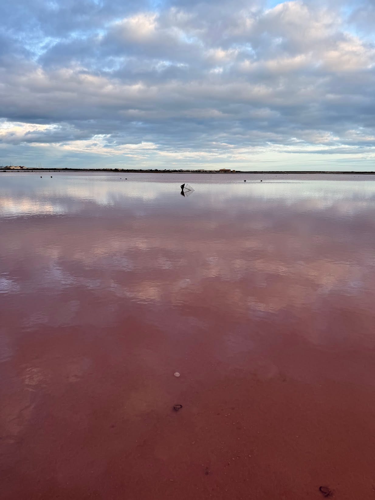 Burası aktif bir tuz üretim alanı ve suyun bu kadar renkli görünmesinin nedeni içerdiği mikroorganizmalar ve algler. Özellikle Dunaliella salina adı verilen alg, yüksek tuz oranına uyum sağlamak için beta karoten üretiyormuş, bu da suya o kırmızımsı tonu veriyormuş.