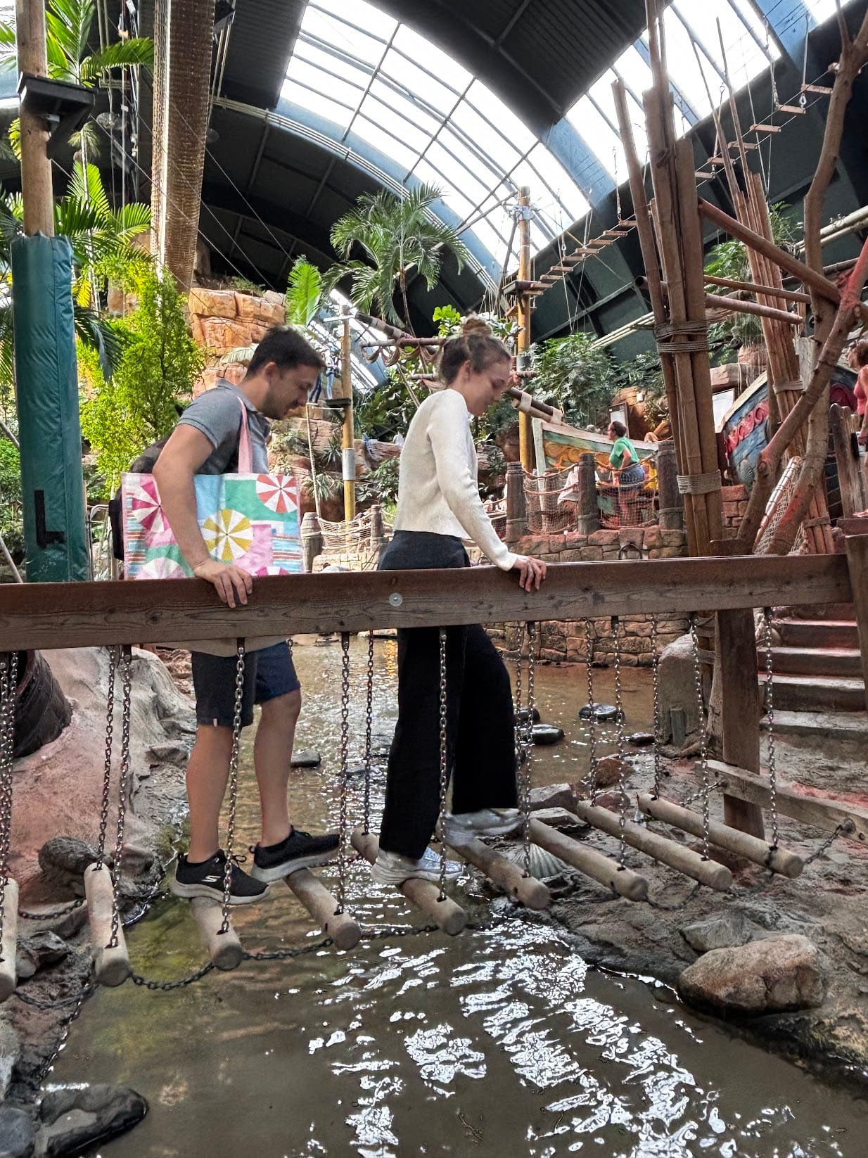 Normalde içeride tırmanış gibi eğlenceli bir parkur da var ama ona da ayrıca para ödeyip rezervasyon yaptırmak gerekiyordu. Yani o 4 Euro tam olarak neye gitti, biz de çözemedik 😅 (Ki normalde 8 Euro’ydu; Aqua Mundo bileti aldığımız için yarı fiyatına denk gelmişti.) Yine de bir şeyler yaptık eğlendik orada. Fotoları aşağıya ekliyorum.