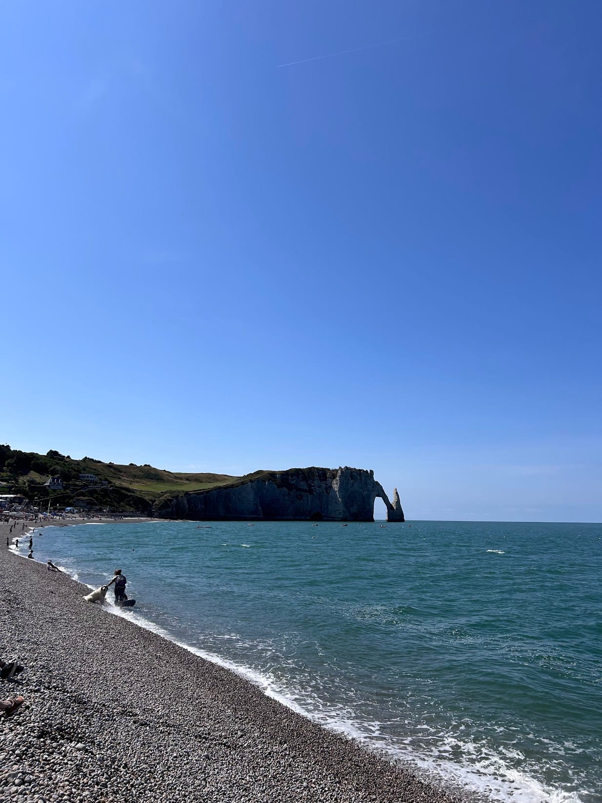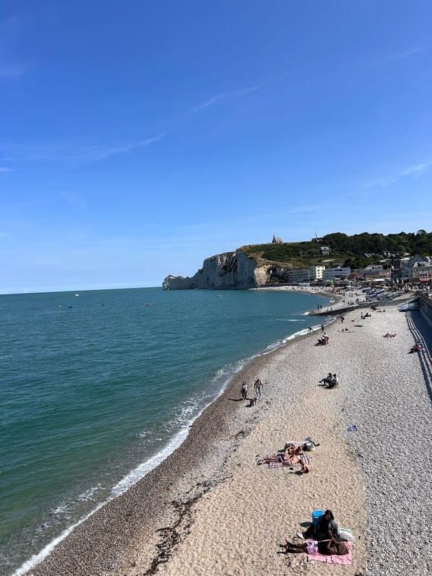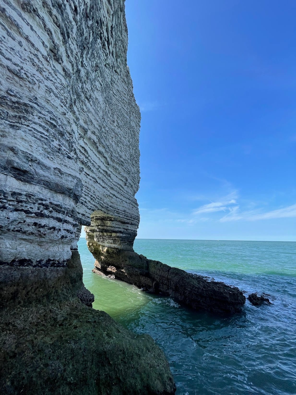 Kahvaltı sonrası valizleri toparlayıp Étretat’a doğru yola çıktık. Étretat, Normandiya kıyısında yer alan küçük bir sahil kasabası. Denizden yükselen bembeyaz kayalıklarıyla ünlü. Şansımıza hava muhteşemdi.