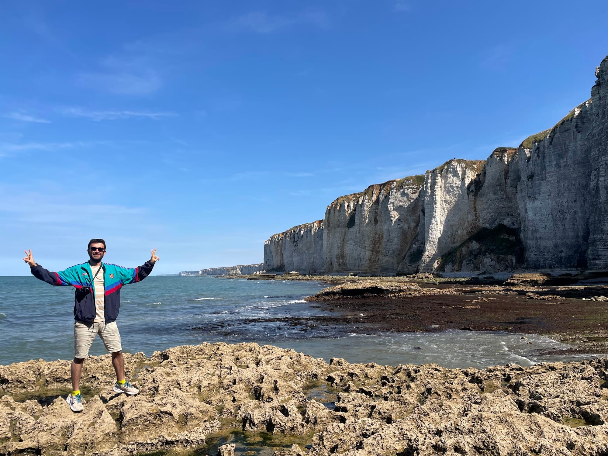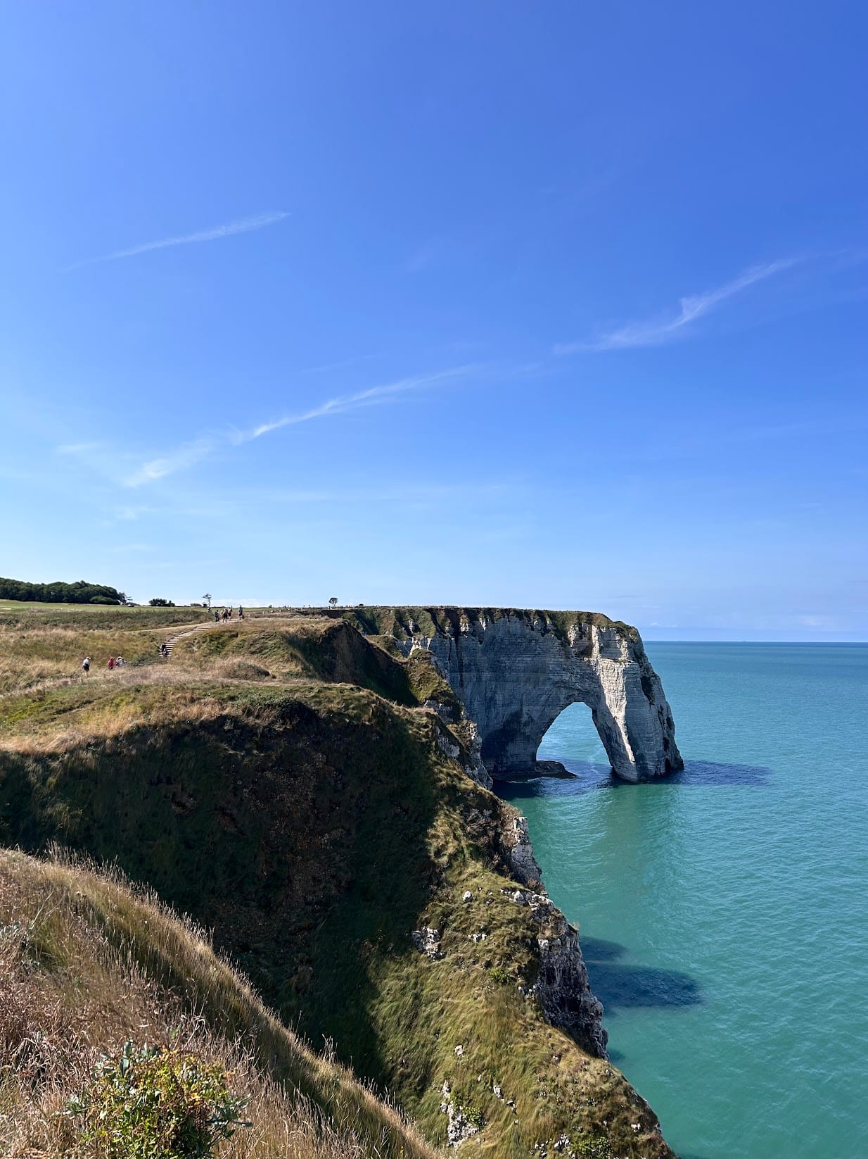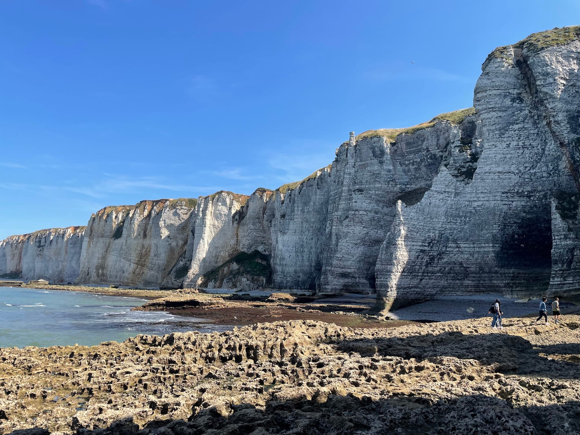 Kahvaltı sonrası valizleri toparlayıp Étretat’a doğru yola çıktık. Étretat, Normandiya kıyısında yer alan küçük bir sahil kasabası. Denizden yükselen bembeyaz kayalıklarıyla ünlü. Şansımıza hava muhteşemdi.