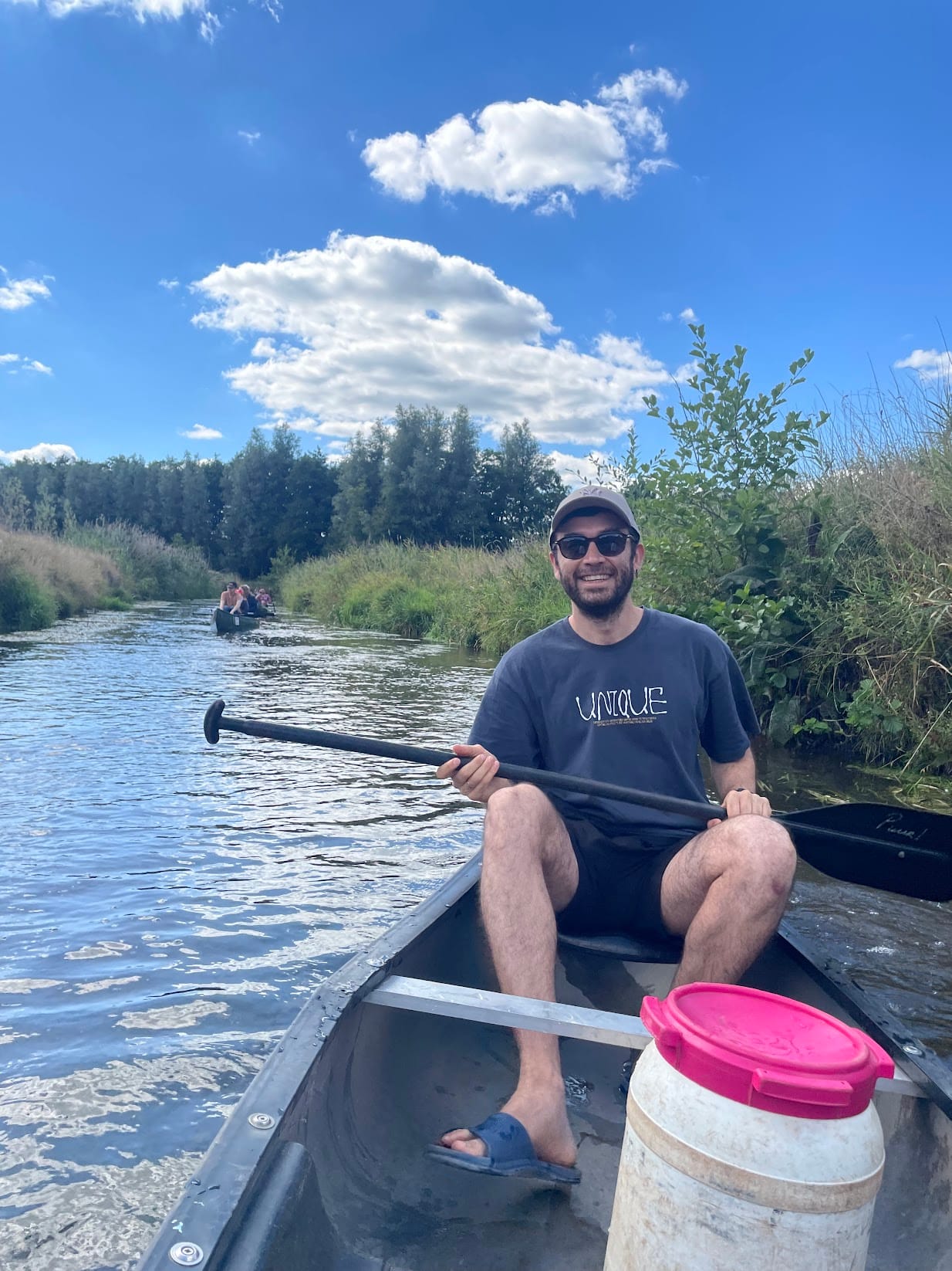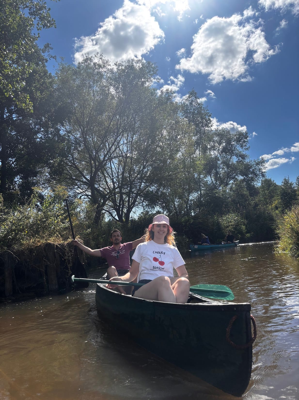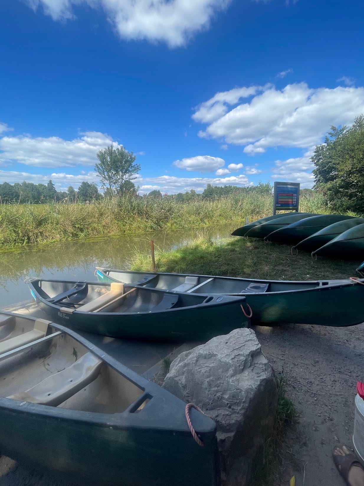 Günü ise kürek çekerek sonlandırmaya karar verdik. Hava harikaydı, planımız Valkenswaard’da kano yapmak oldu. Arabayı Canoe rental Valkenswaard otoparkına bıraktık; oradan otobüslerle nehrin başlangıç noktasına götürdüler ve kanolarımızı teslim ettiler. Yaklaşık 8 kilometrelik bir nehir rotasında kürek çektik ve sonunda tekrar arabalarımızın olduğu noktaya geri döndük. Suyun sesi, yeşillikler ve güneşin ışığıyla gerçekten huzurlu bir kapanış oldu. Manzaradan birkaç kare de aşağıda 📸🌊