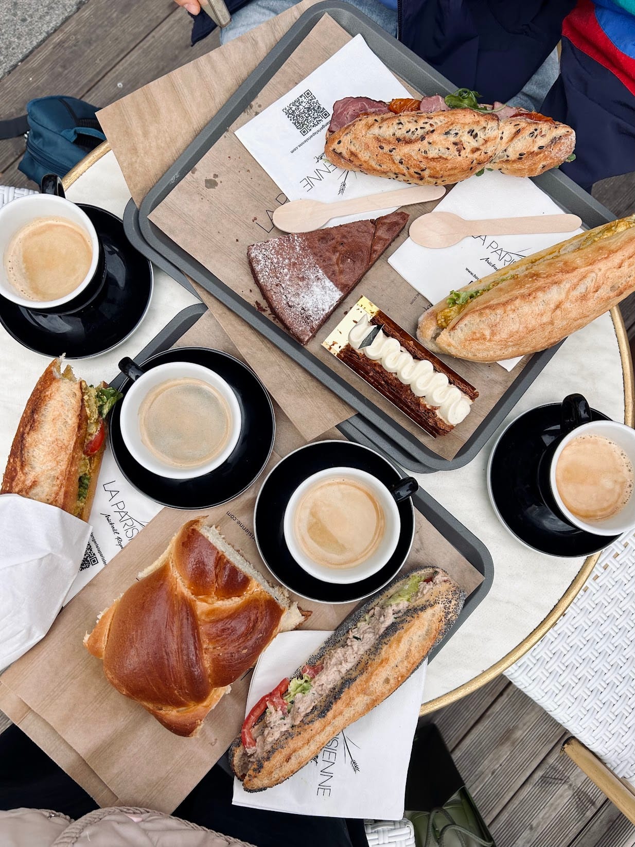 Derken karşımıza harika bir fırın çıktı – La Parisienne Deauville — içerideki sandviçler ve tatlılar o kadar güzeldi ki, kendimizi “bir tane daha” derken bulduk 🥐☕️