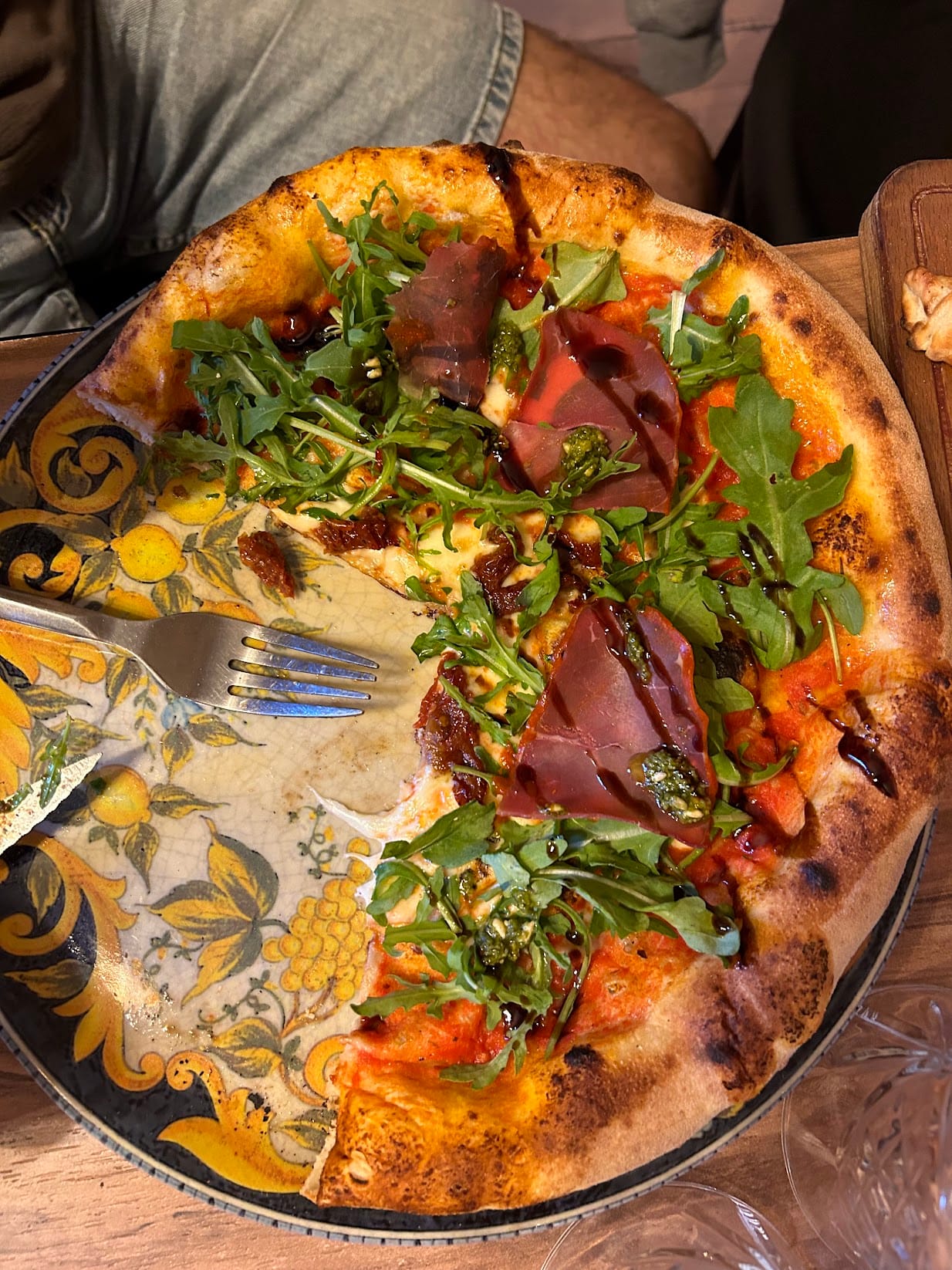 Biz de yakındaki Mona Lisa adlı pizzacıya geçtik — meğer burası Türk birine aitmiş! Pizzalar gerçekten başarılıydı 🍕👏