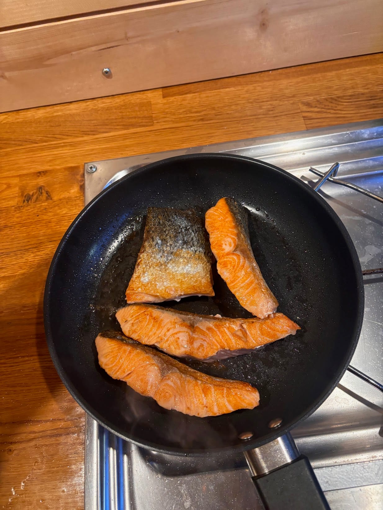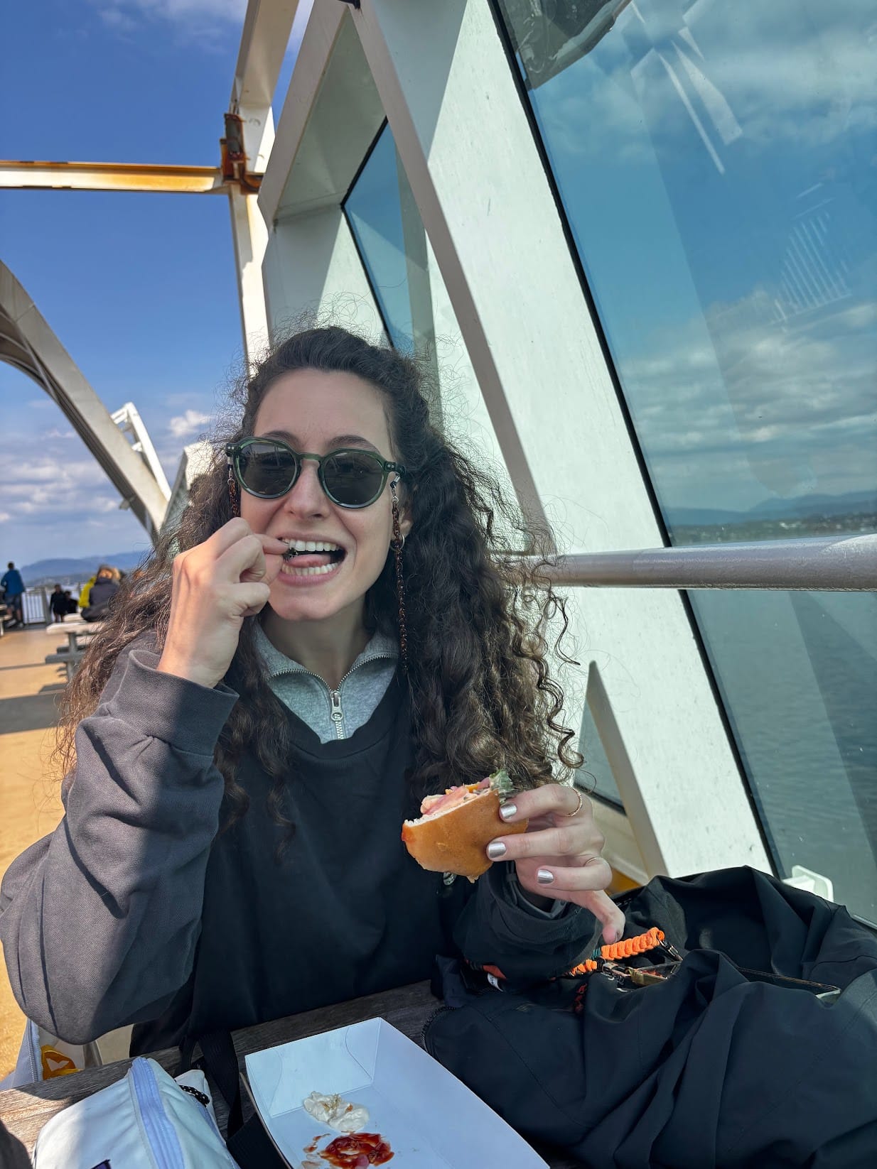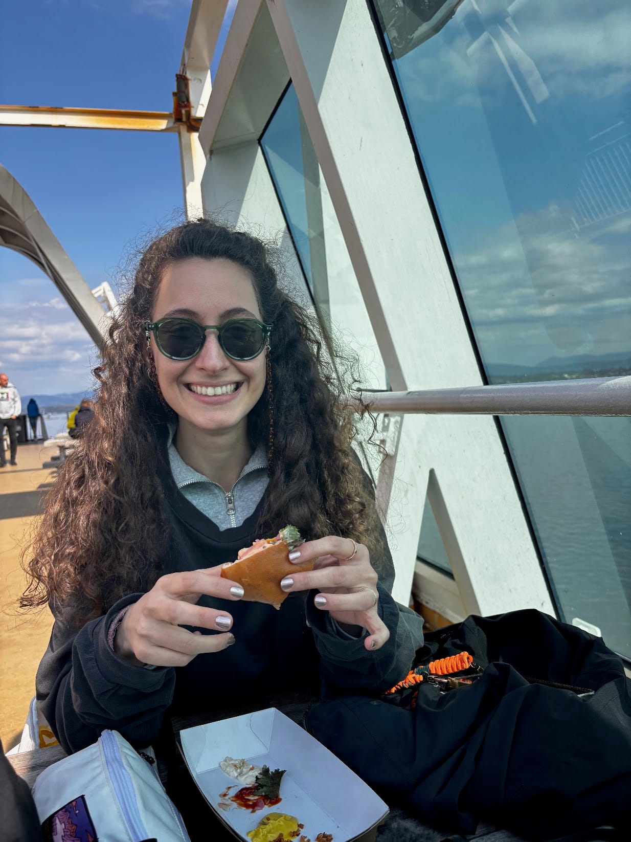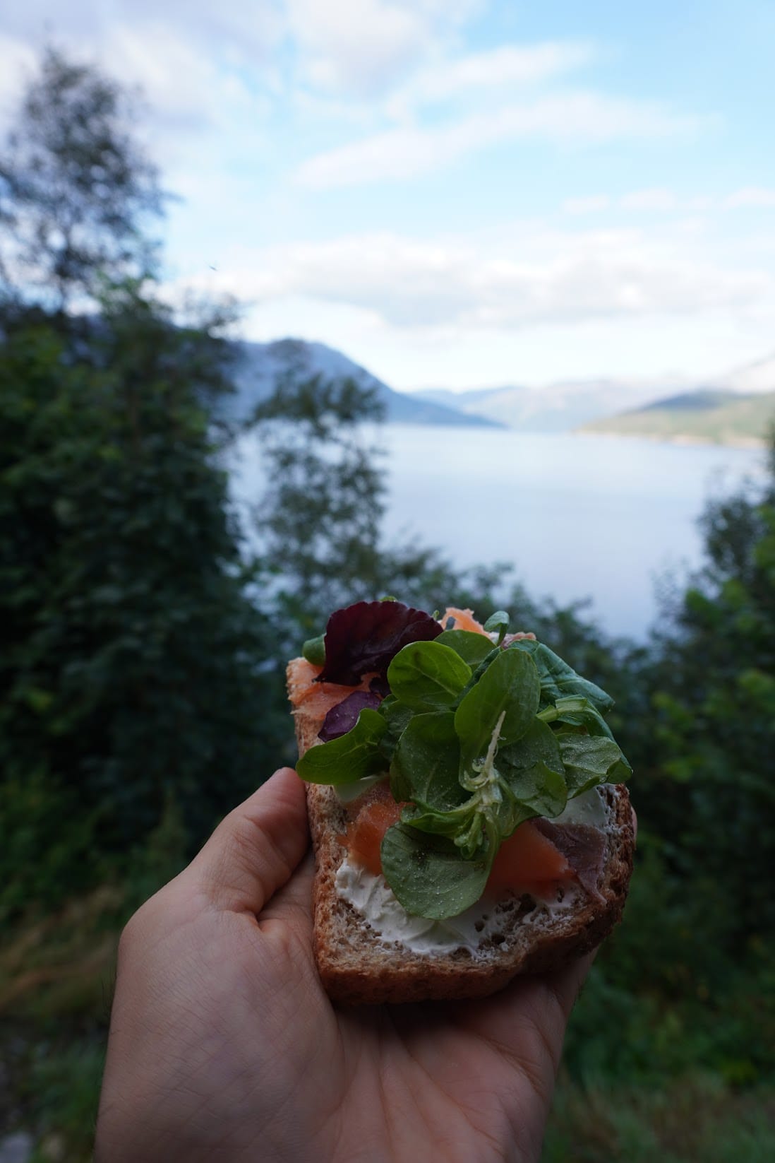 Sabah kalkıyoruz, müsli kahvaltımızı yapıyoruz. Hako gün içinde yememiz için bize klasiklerinden birini hazırlıyor: somonlu sandviç. 🐟