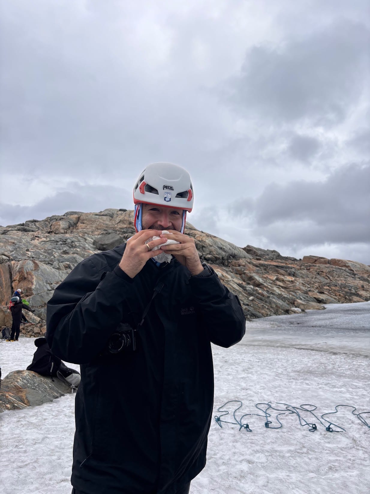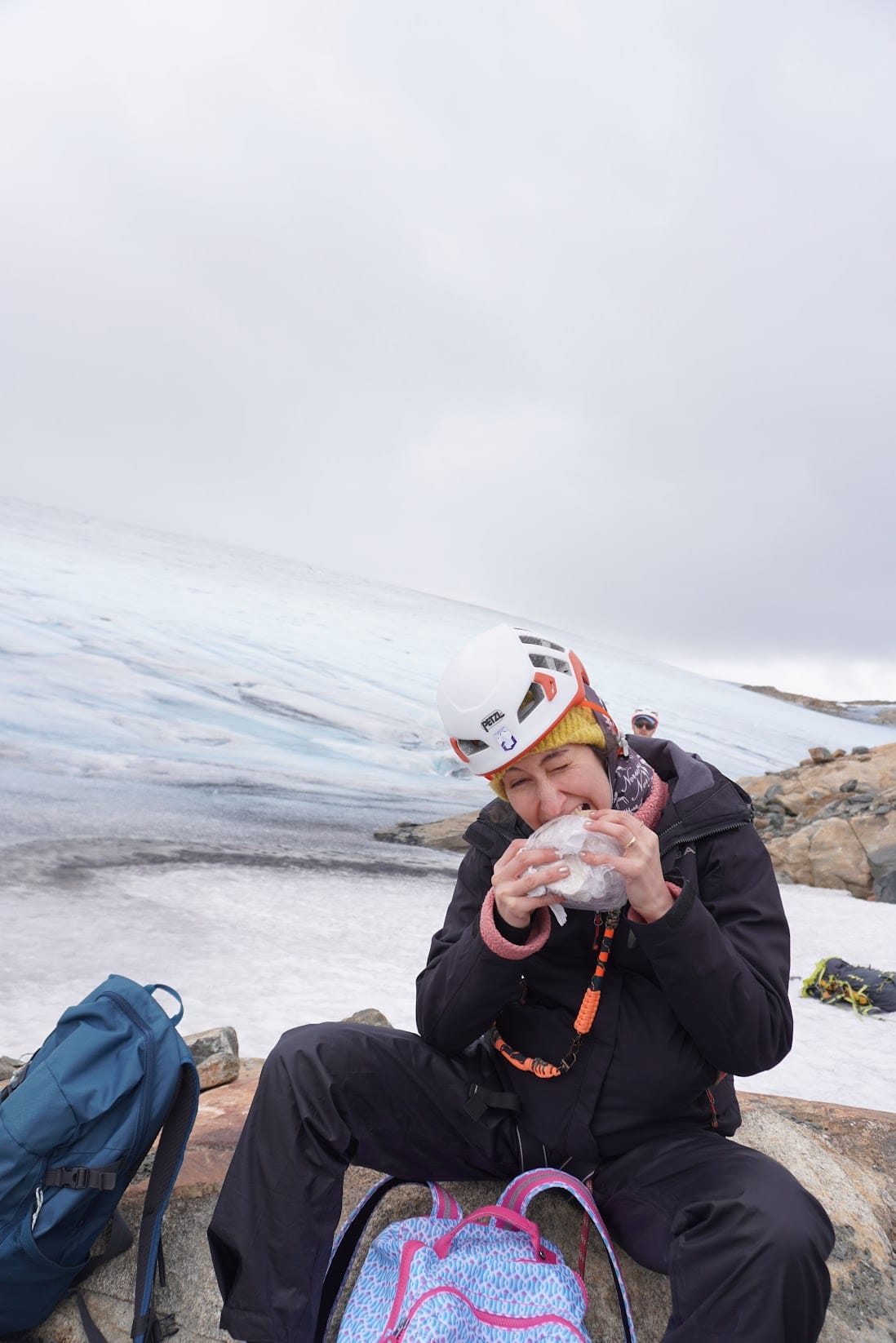 Buzulun üstüne çıkmadan öncesinde kısa bir sandviç molası veriyoruz.