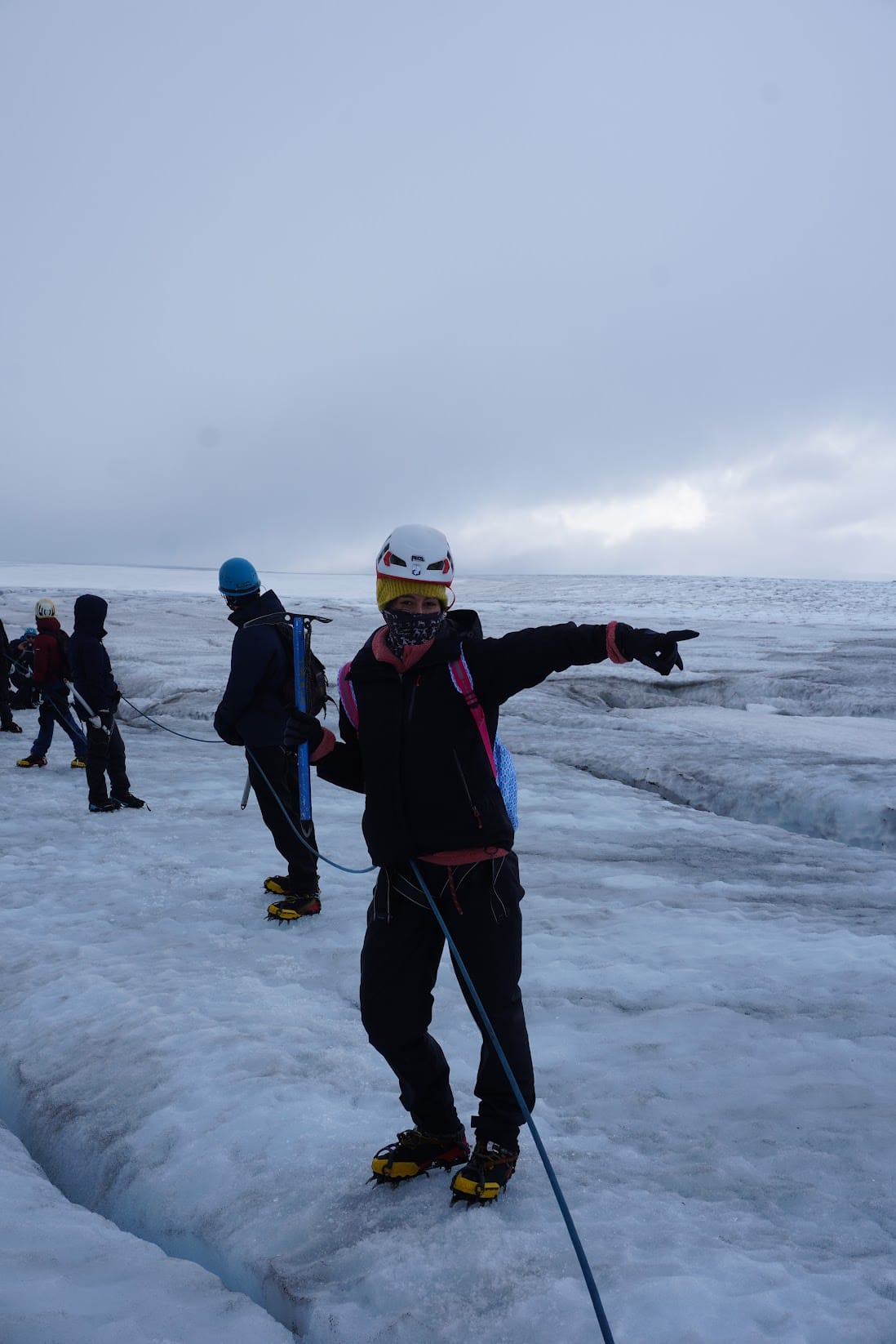 Merkezin içinde buzullar hakkında bilgiler alıyoruz, önünde ise, ekipmanların kullanımı ve nasıl giyinilmesi hakkında bilgi veriliyor.