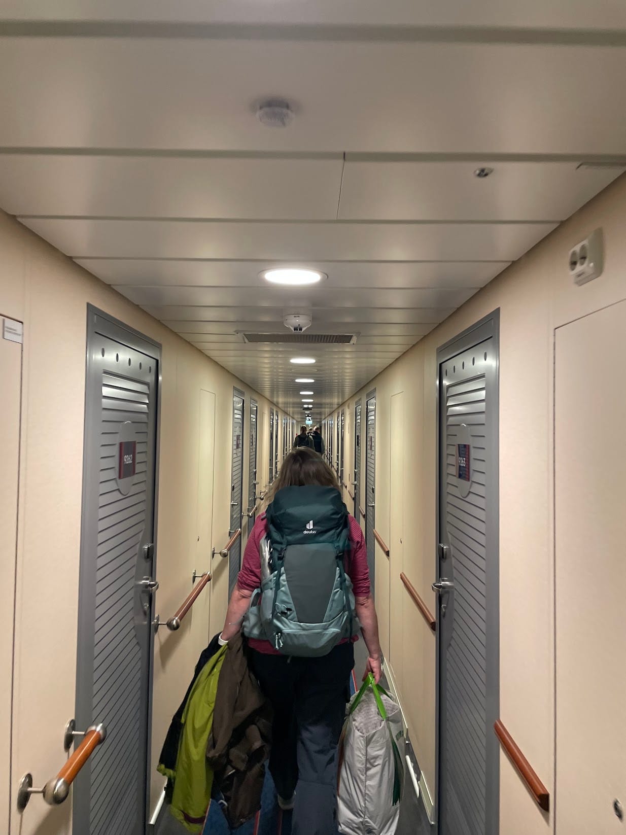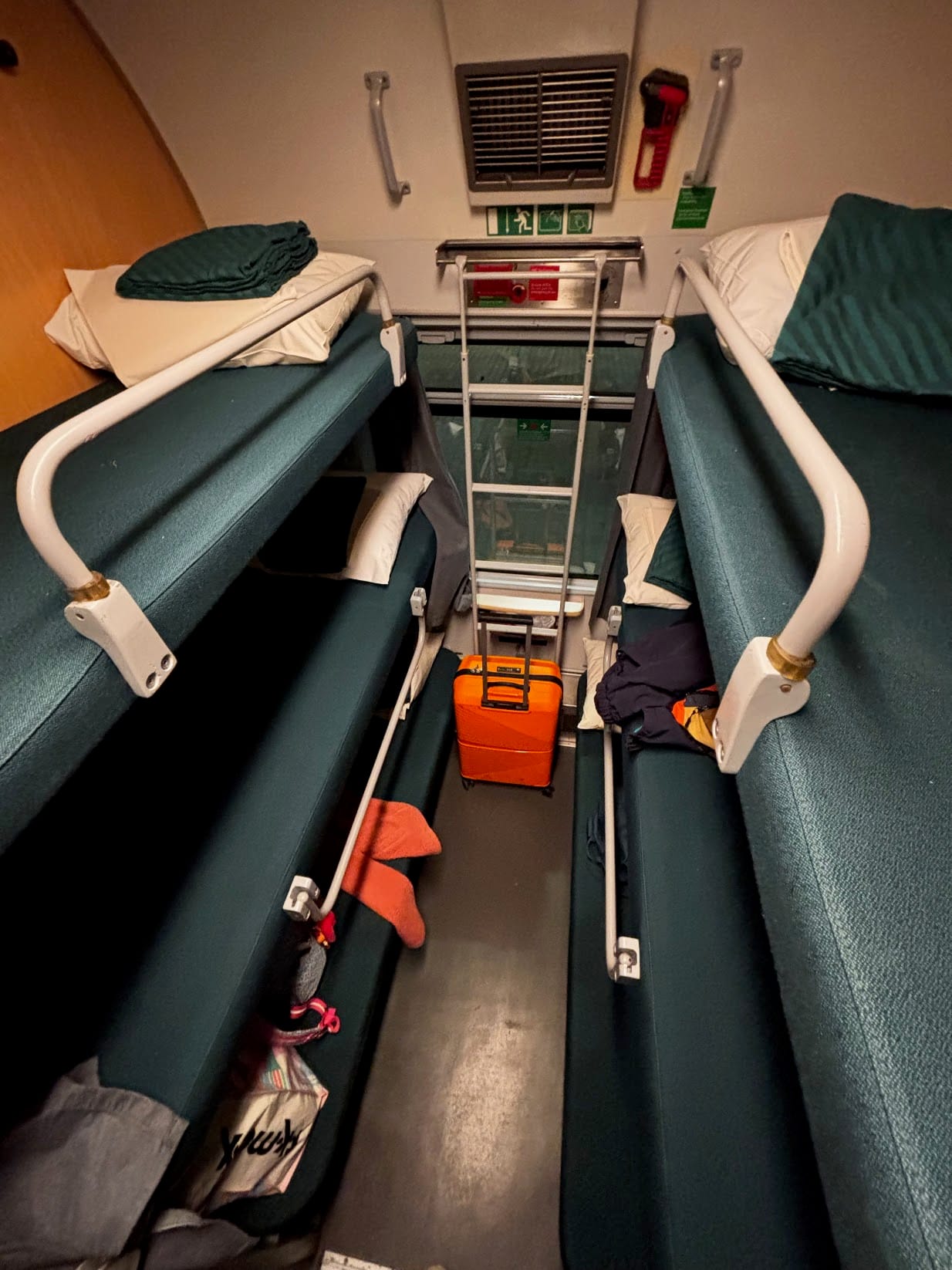 Trenimiz geldi, 5. vagon, 2. oda. Odamızın kilidi yok ve başkalarına oda kartı verirlerken gördük, o an anlamadık ama sonrasında anladık ki biz 6 kişilik kompartmanı sadece ikimiz için tutmuştuk ve 1999 NOK (yaklaşık 197 Dolar) ödemiştik. Diğer odalar ise direk iki kişilikmiş, sonrasında trenden inerken görecektik 😸
