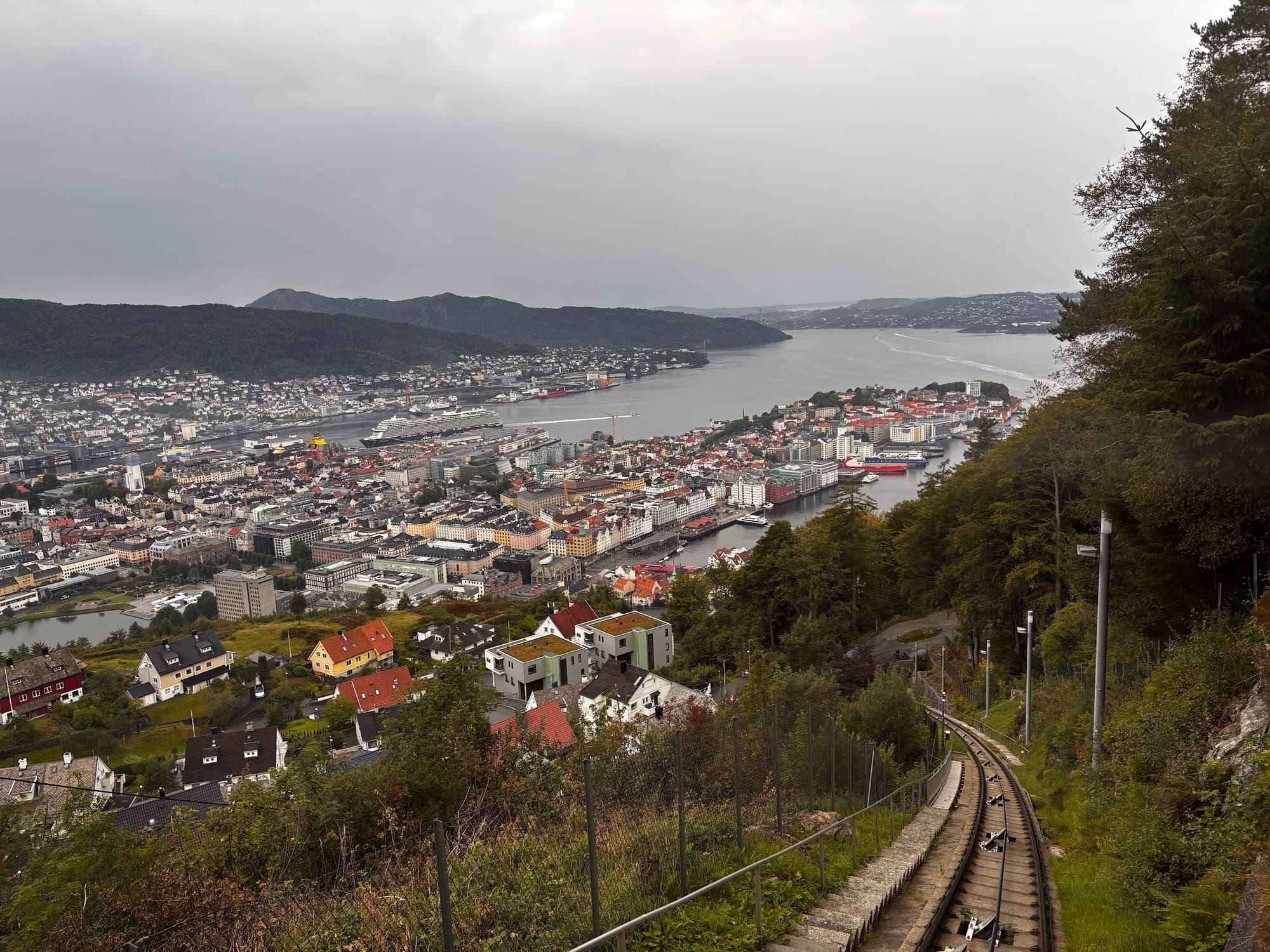 Fløibanen tepesinden manzaralar, en sondaki fotoğraf da bir otel odası bu arada 😸