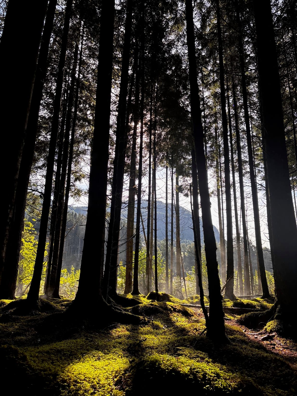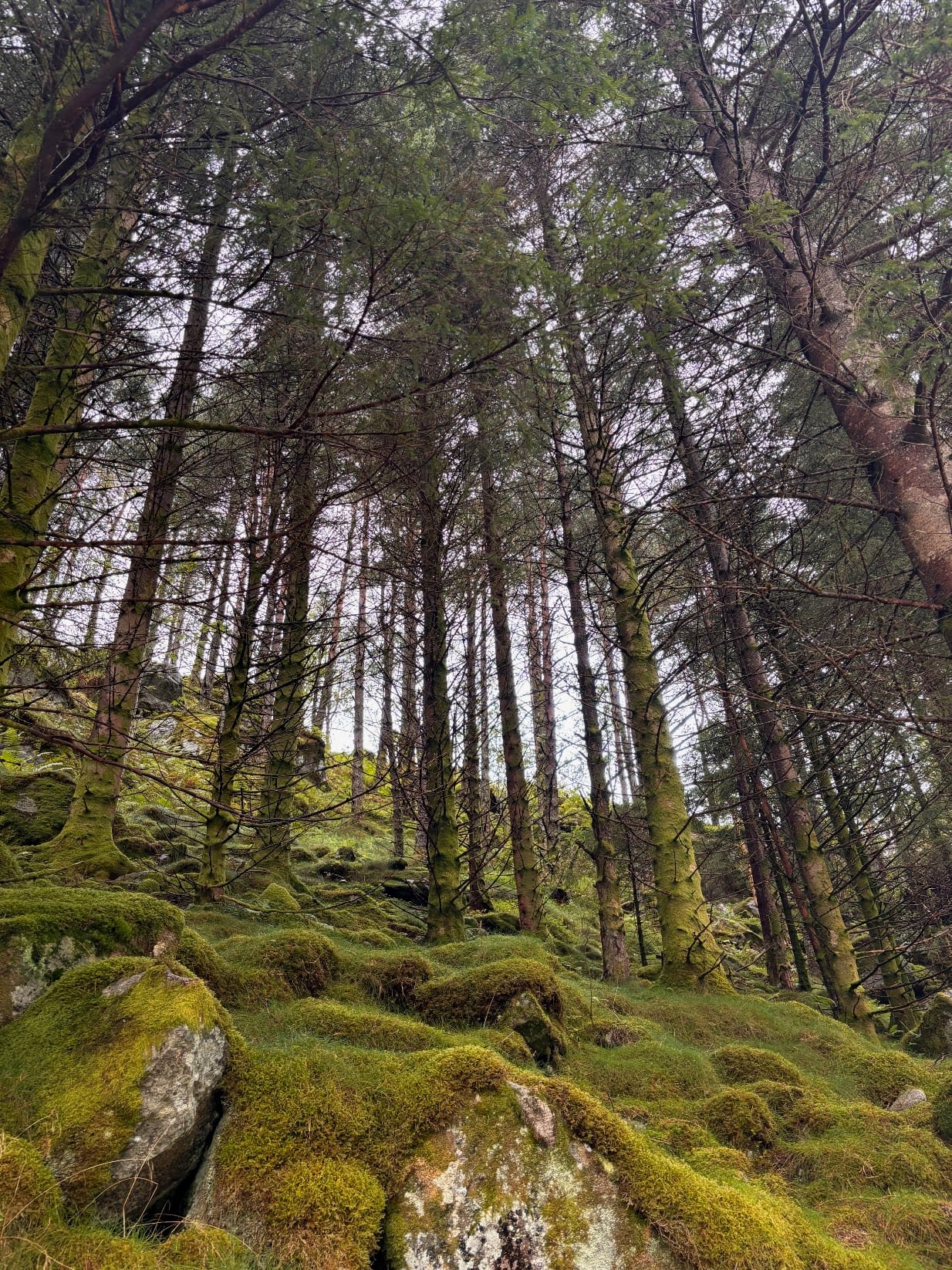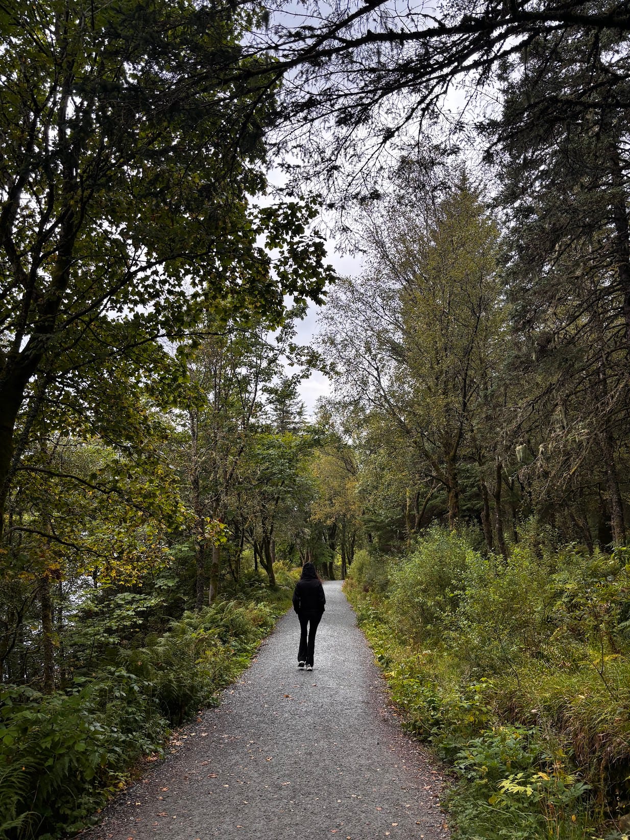 Tepede yürürken yine minik minik yağmur atıştırmaya başladı ve sonrasında orman yolunun içinden yürüyerek şehir merkezine indik. 🌲
