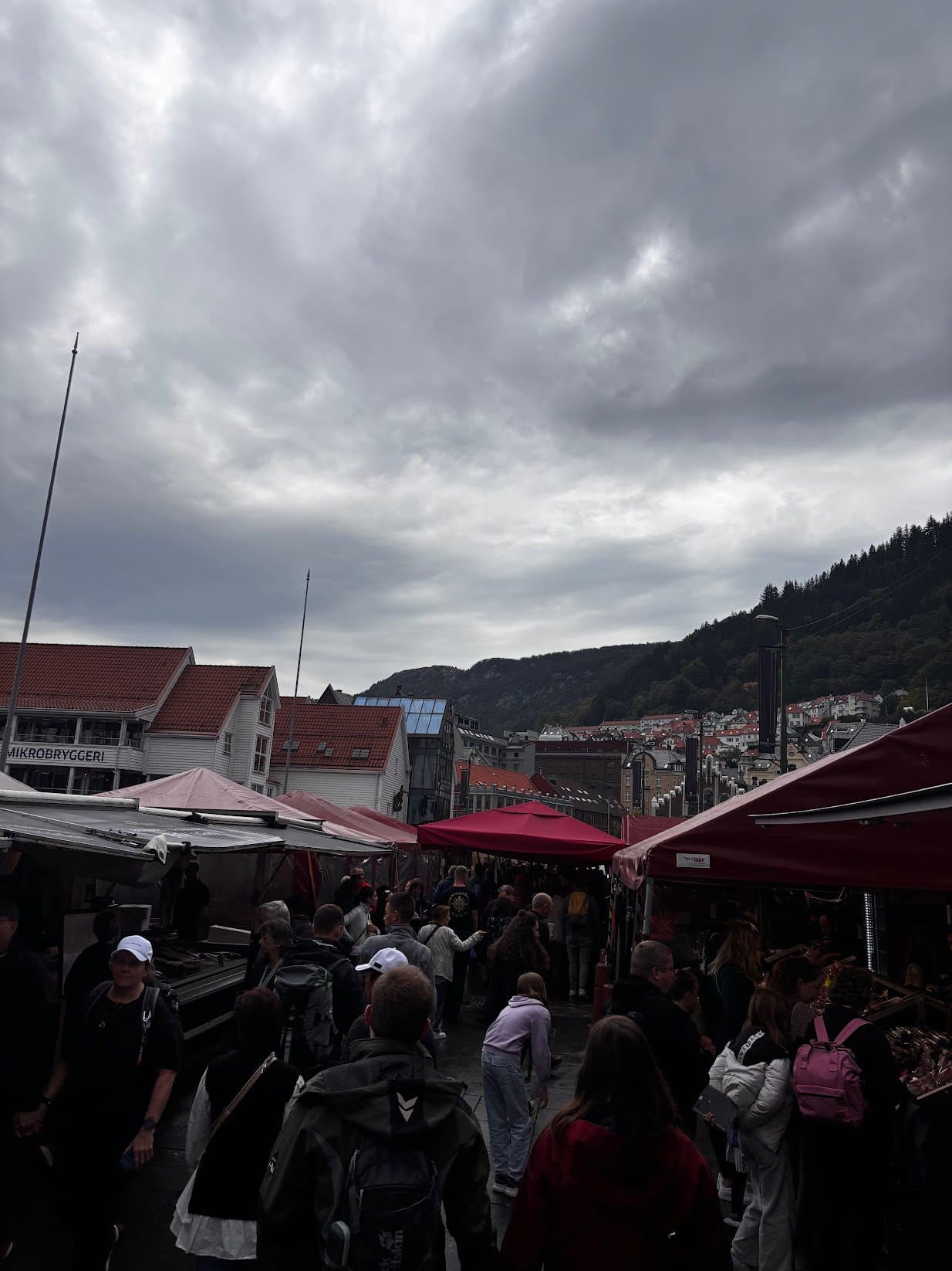 Biraz sokaklarda gezindik, Bergen'in ünlü fish marketine uğradık, sabah da uğramıştık ancak daha yeni yeni açılıyordu, bu sefer kalabalıklarla beraber gezdik, balina, reindeer kuru etinden falan denedik, hiçbir şey pastırmanın yerini alamıyor diyip yolumuza devam ettik.