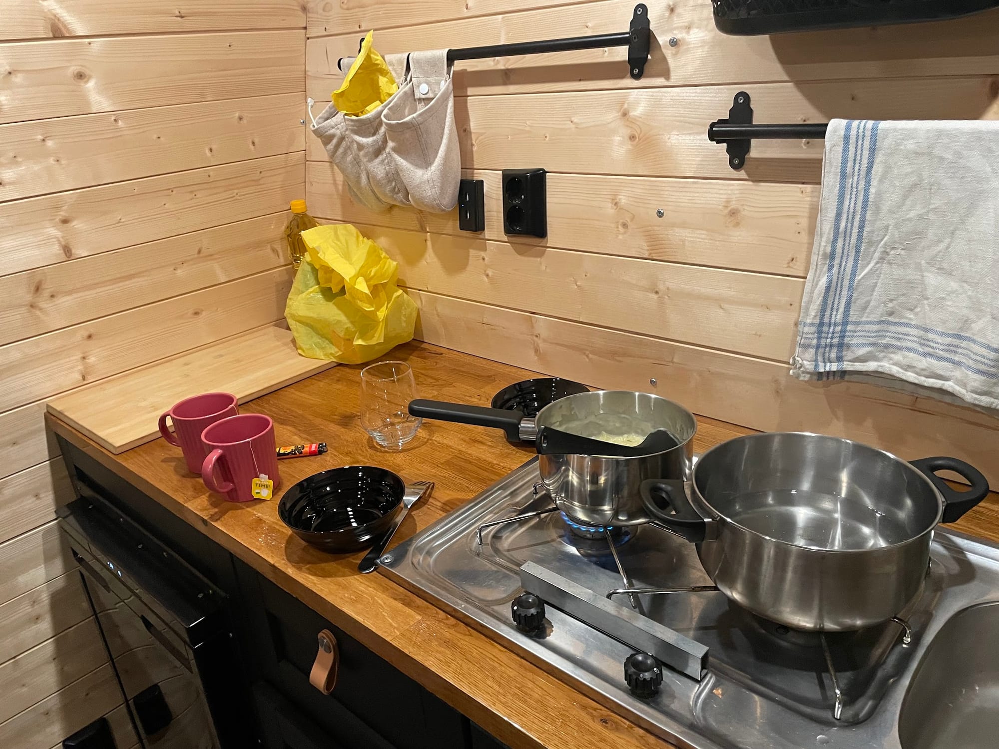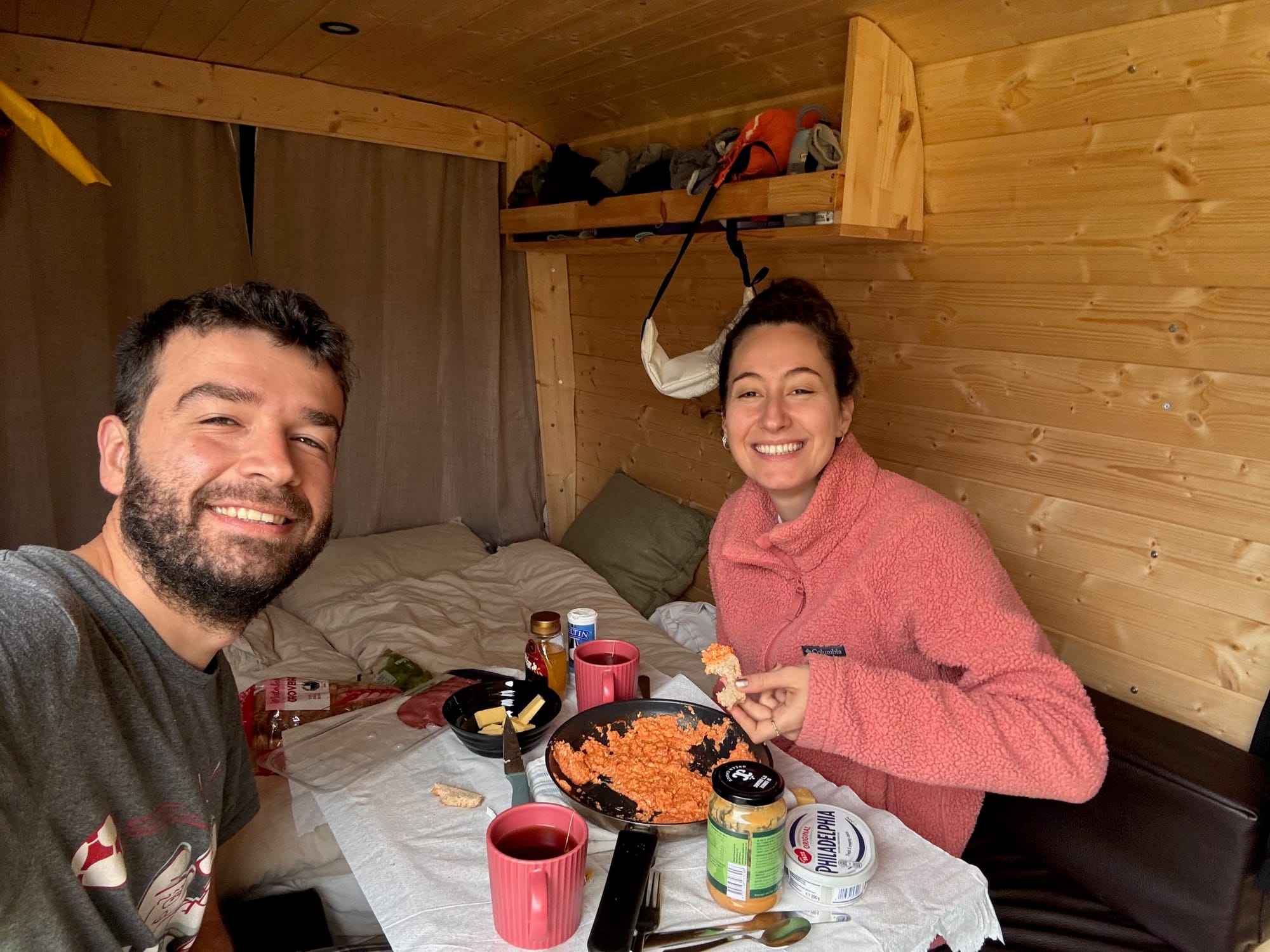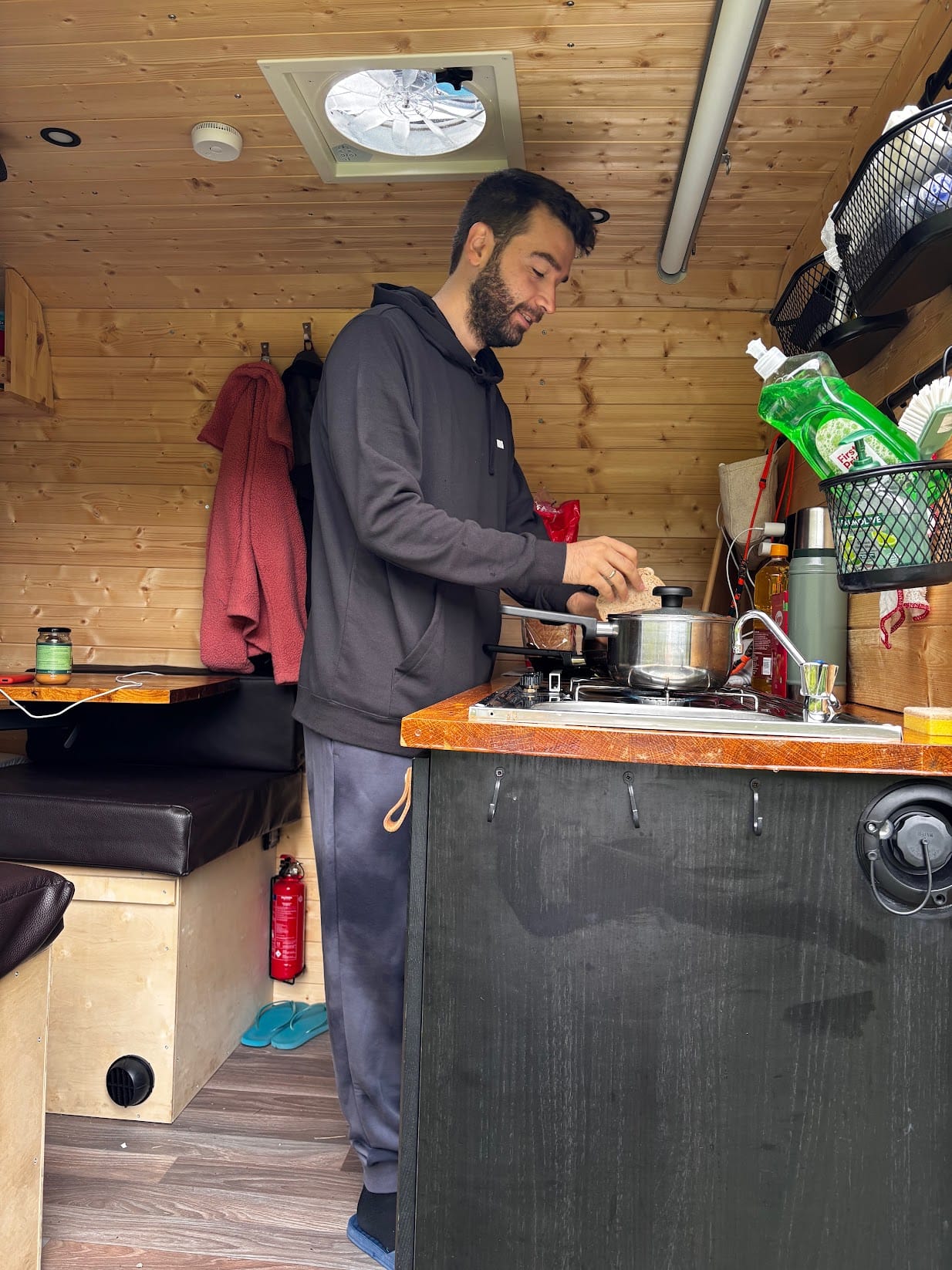 Ben ancak kendime geldim ve sonrasında karavanı toparladım. Kahvaltı için klasik bir başlangıç yaptık: yulaf ve süt. ☕️