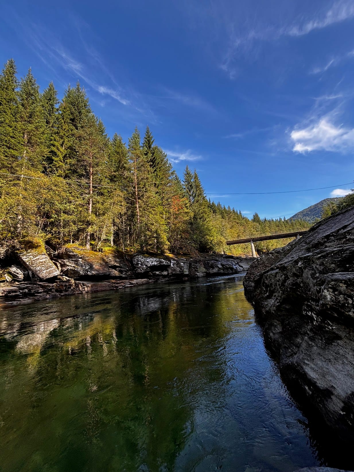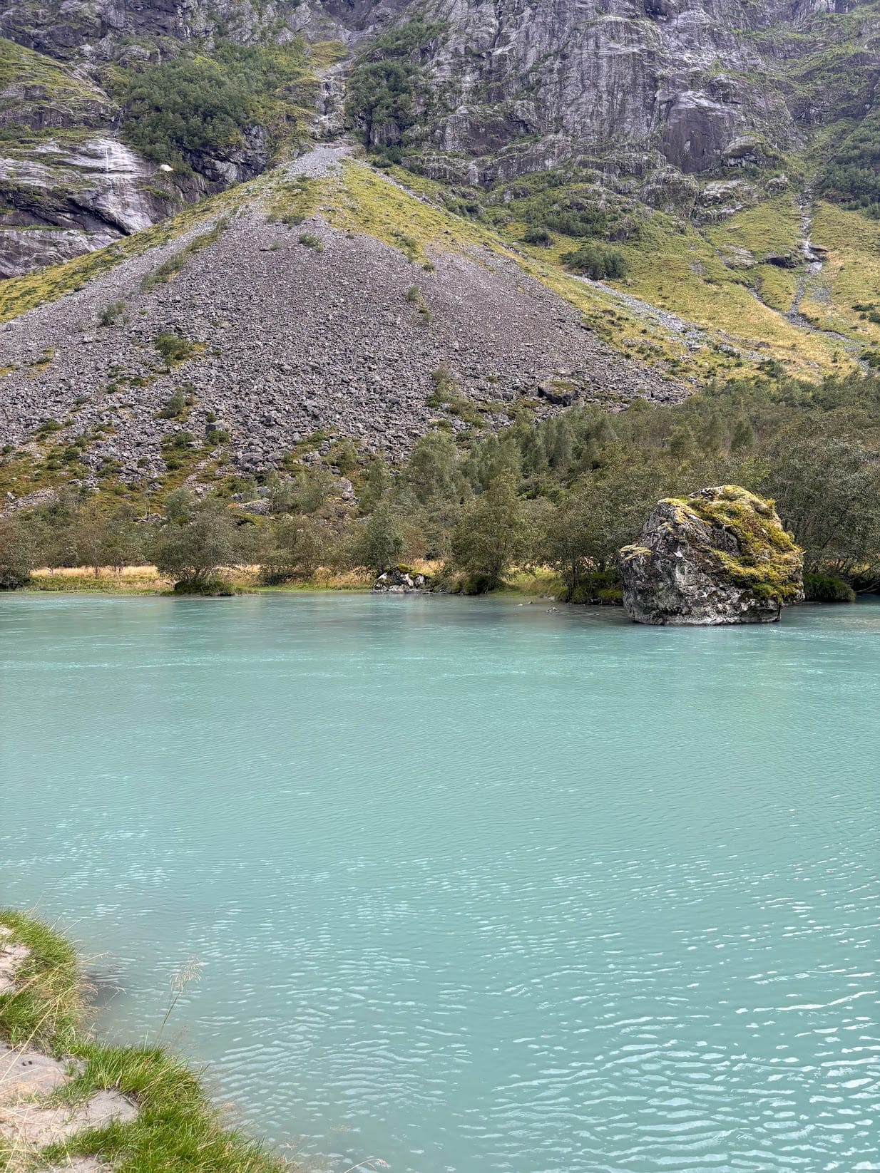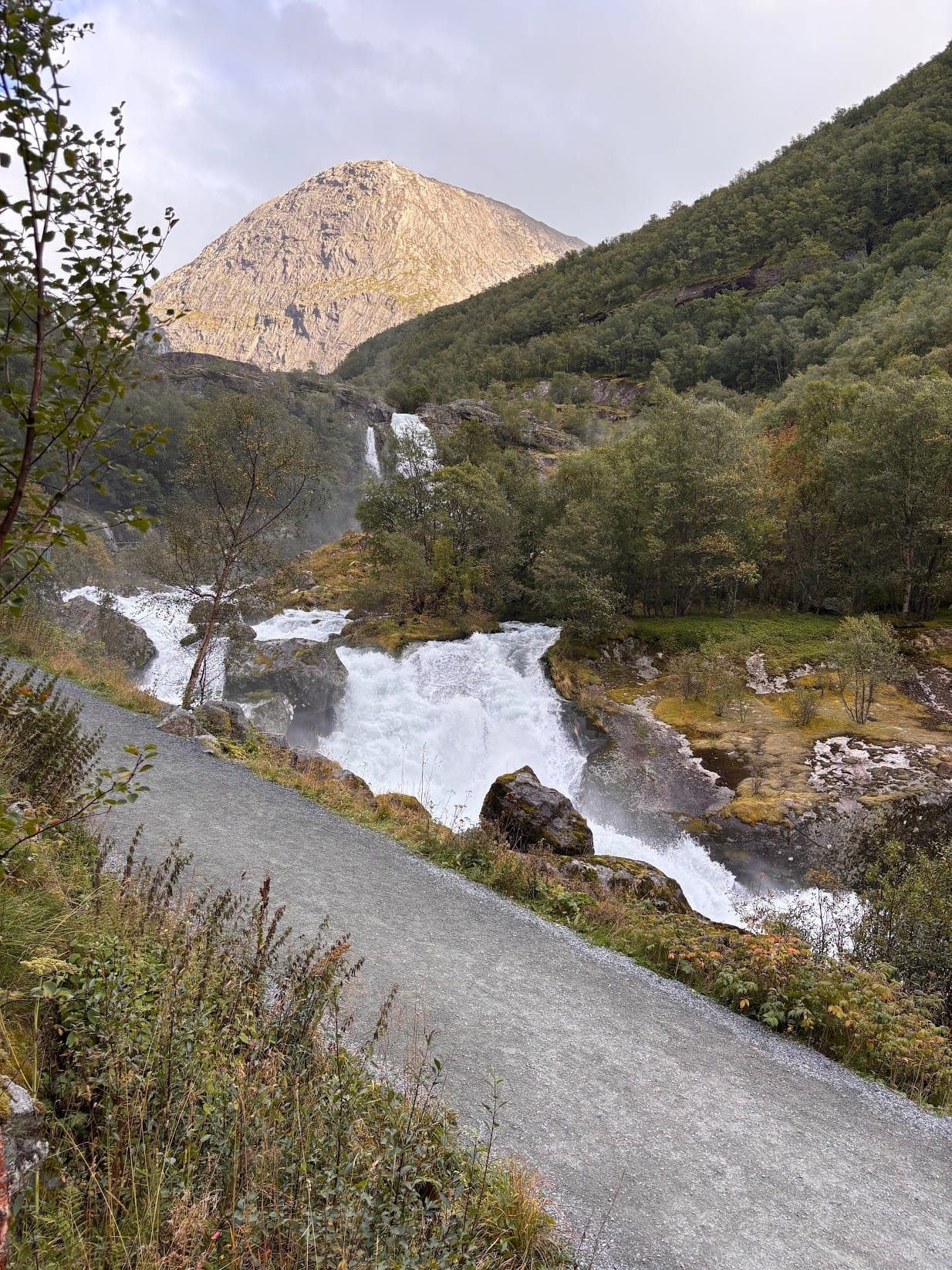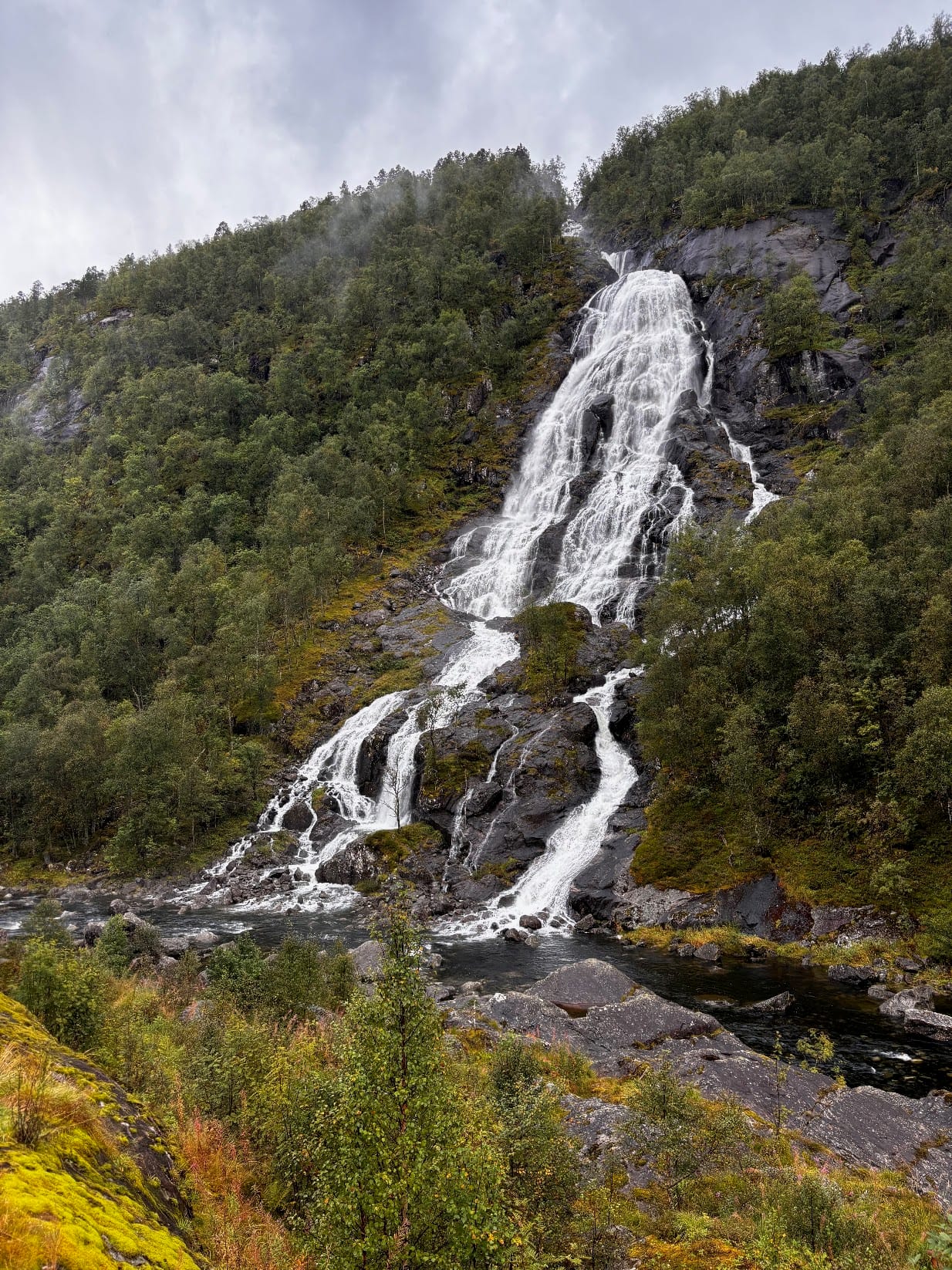 Şu noktada (Stardalselva Parkering) arabayı park edip biraz yakından bakalım dedik. Bu arada kesinlikle fotoğraflarda gerçek rengi çıkmıyor maalesef. Norveç doğası insanı sürekli kandırıyor gibi, sürekli daha fazla şaşıracak bir şey görebiliyor olmak çok garip. 💙