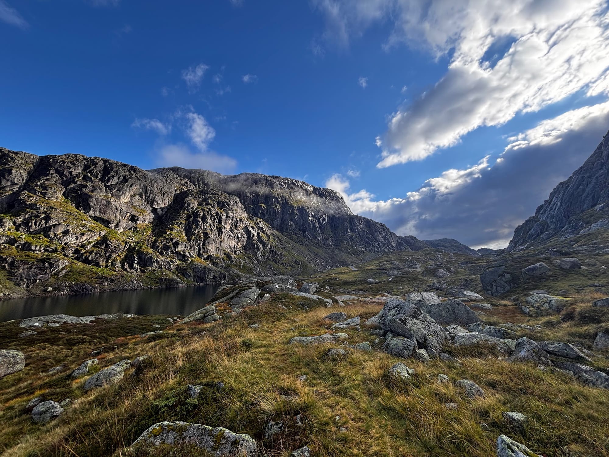 Burada önce zorlu rotayı yapıyoruz, tepeye kadar tırmanıp Boltavatnet gölüne çıkıyoruz.