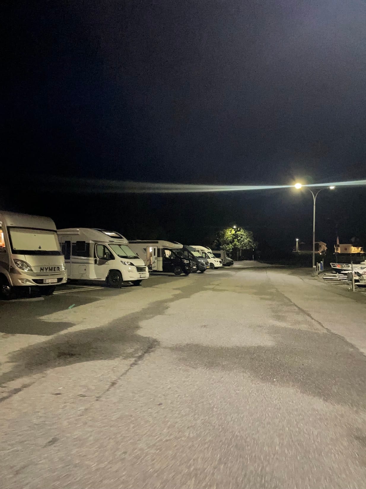 ve tüm gezi boyunca bizim en büyük yardımcımız olacaktı. 📱 Bu uygulamada kullanıcılar, daha önce park ettikleri veya kamp kurdukları yerleri işaretliyor, kendi deneyimlerini paylaşıyorlar. Biz de önerilen noktaya vardık. Burası küçük bir köy yolu üzerindeydi. Önümüzde bir karavancının daha park ettiğini görünce “tamam” dedik, burası olur. Ve böylece, karavan hayatımızın ilk bedava konaklamasını da gerçekleştirmiş olduk! 🚐✨