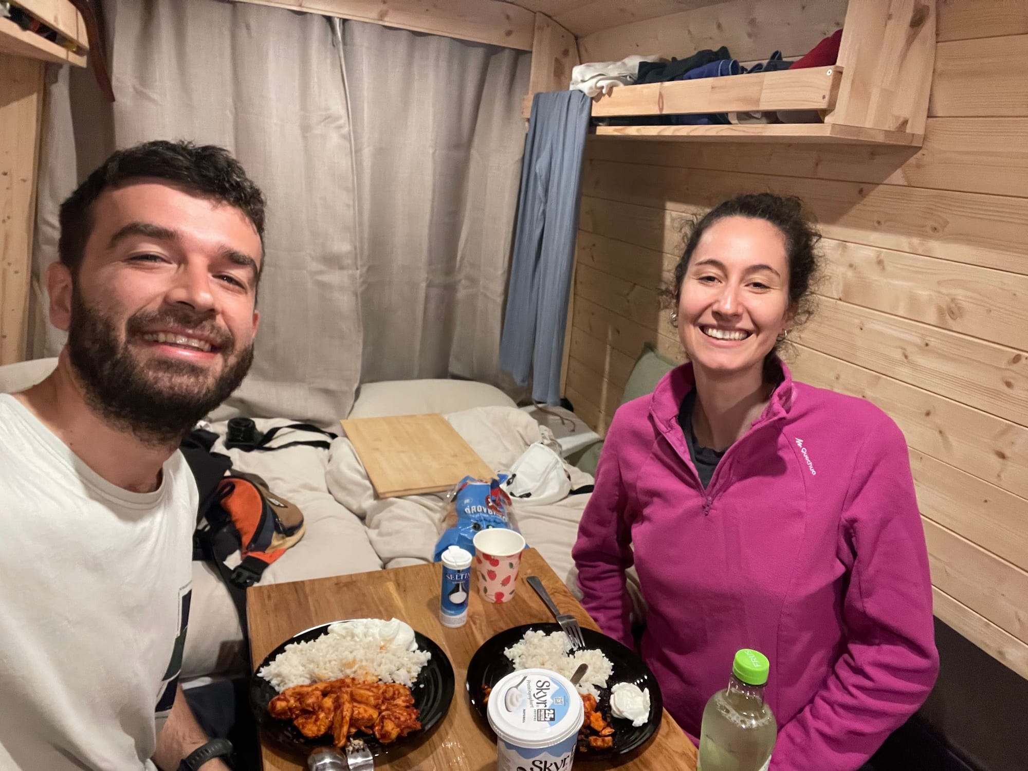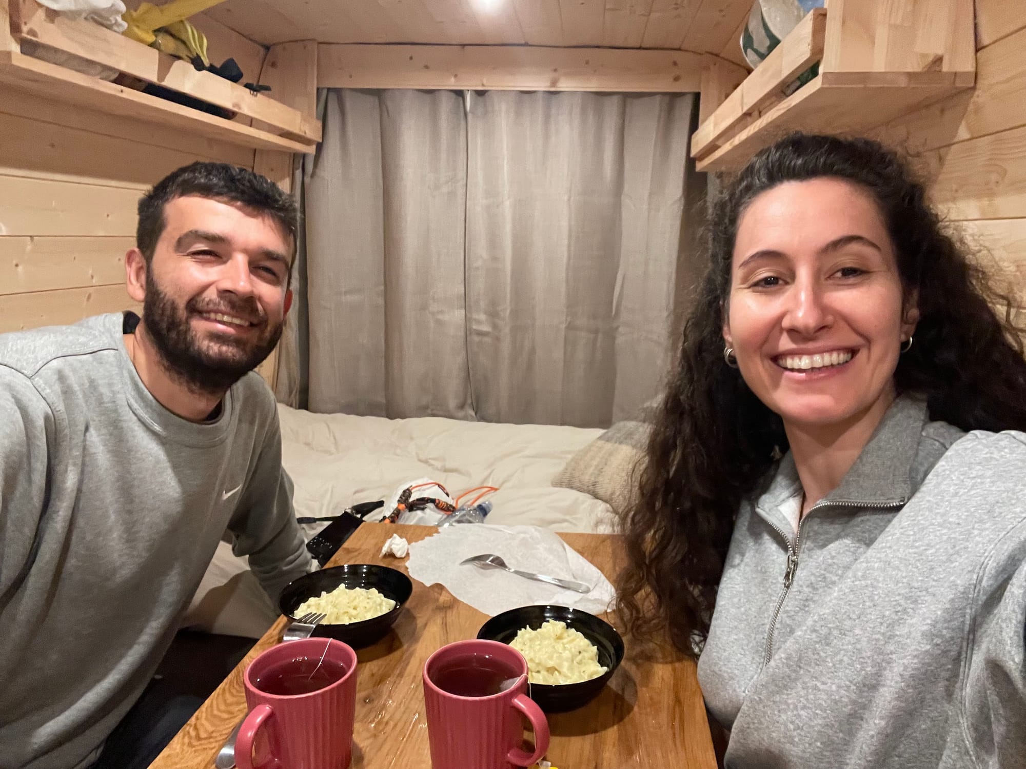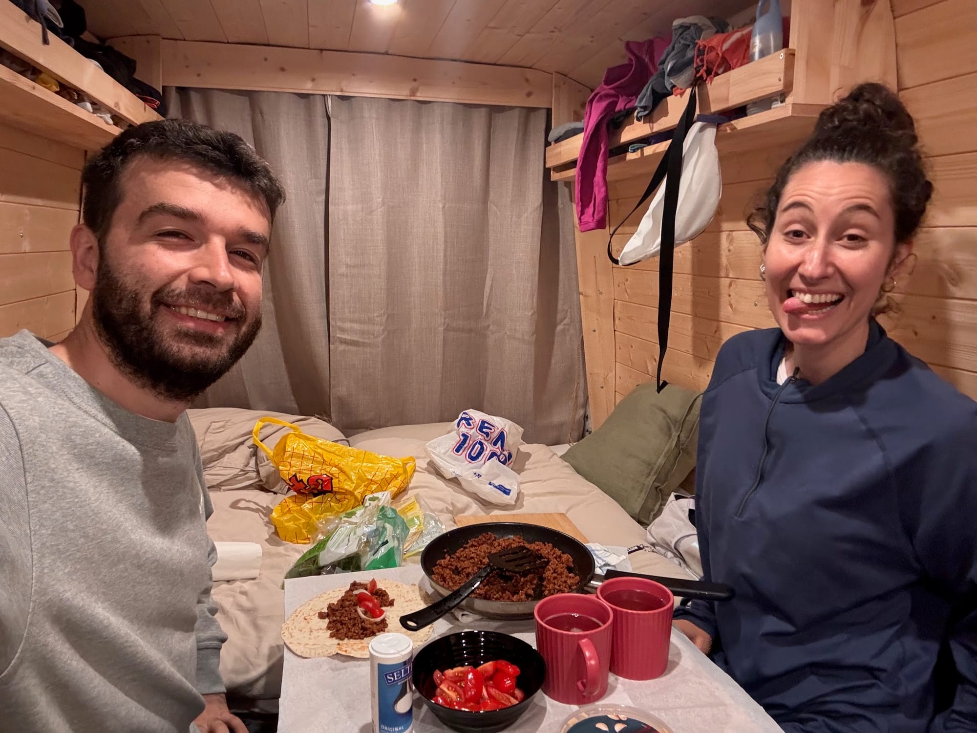 Gece bütün yorgunluğumuzla, yine uygulamanın önerdiği şehirde bir konum bulup yerleşiyoruz. Hızlıca bir şeyler hazırlayıp yiyoruz, valizlerimizi yarın için toparlıyoruz. Hemencecik uykuya dalıyoruz.