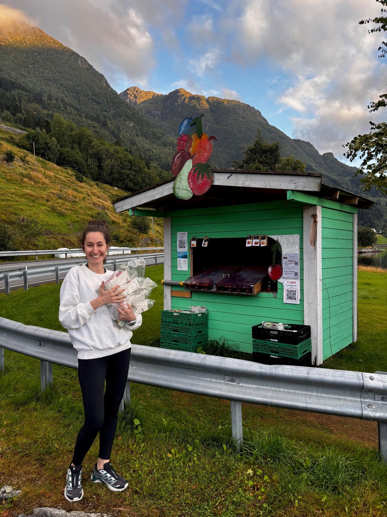 Sonra yakındaki küçük bir yerel marketten peynir aldık — 3–6 aylık olgunlaştırılmış olan 80 NOK, 6–12 aylık olan 110 NOK. Aradaki farkı anlamak için tabii ki ikisinden de aldık. 😄🧀 İkisi de çok lezzetliydi.