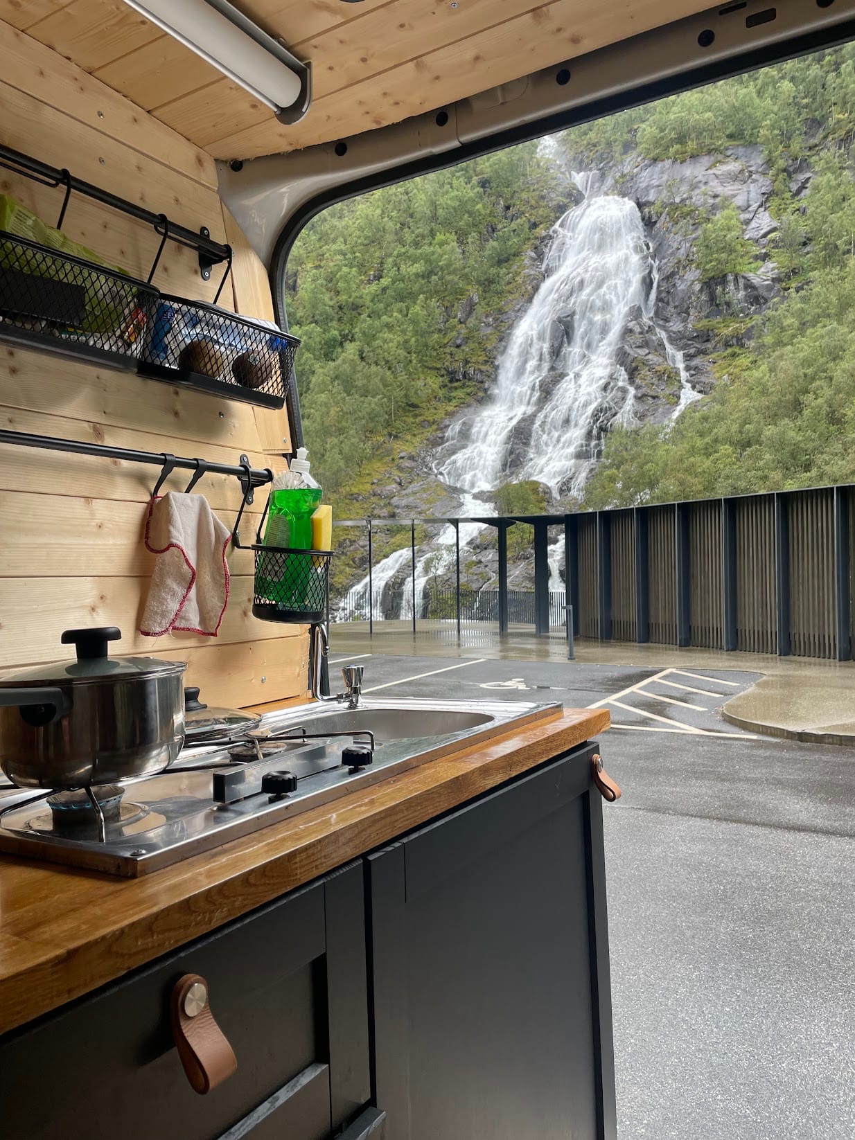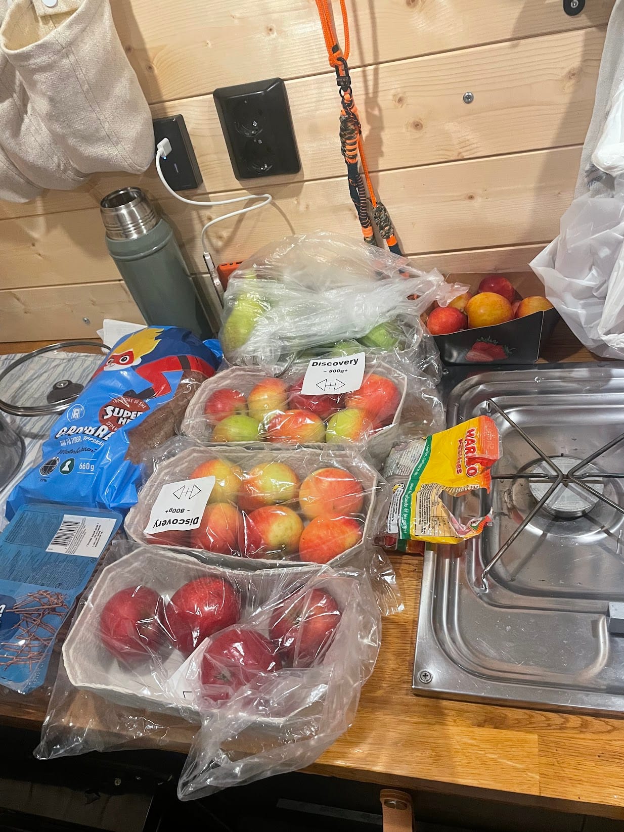 Karnımız açtı, hemen mutfağı kullanmaya başlayıp yemek hazırlamak istiyorduk. Tek sorun: ocak için ek çakmağın gazı bitmişti. O an endişe dolduk ilk başta, çünkü avrupada saat 9 sonrasında açık bir yer bulmak zor, hele bir de Norveç'te bulunduğumuz yerlerde açık bir market bulamayız diye düşünürken, haritadan bir baktık açık bir yer var. Koşa koşa o markete gittik, kocaman bir market ve Norveç'te bizi şaşırtan o detayı öğrenmiş olduk.