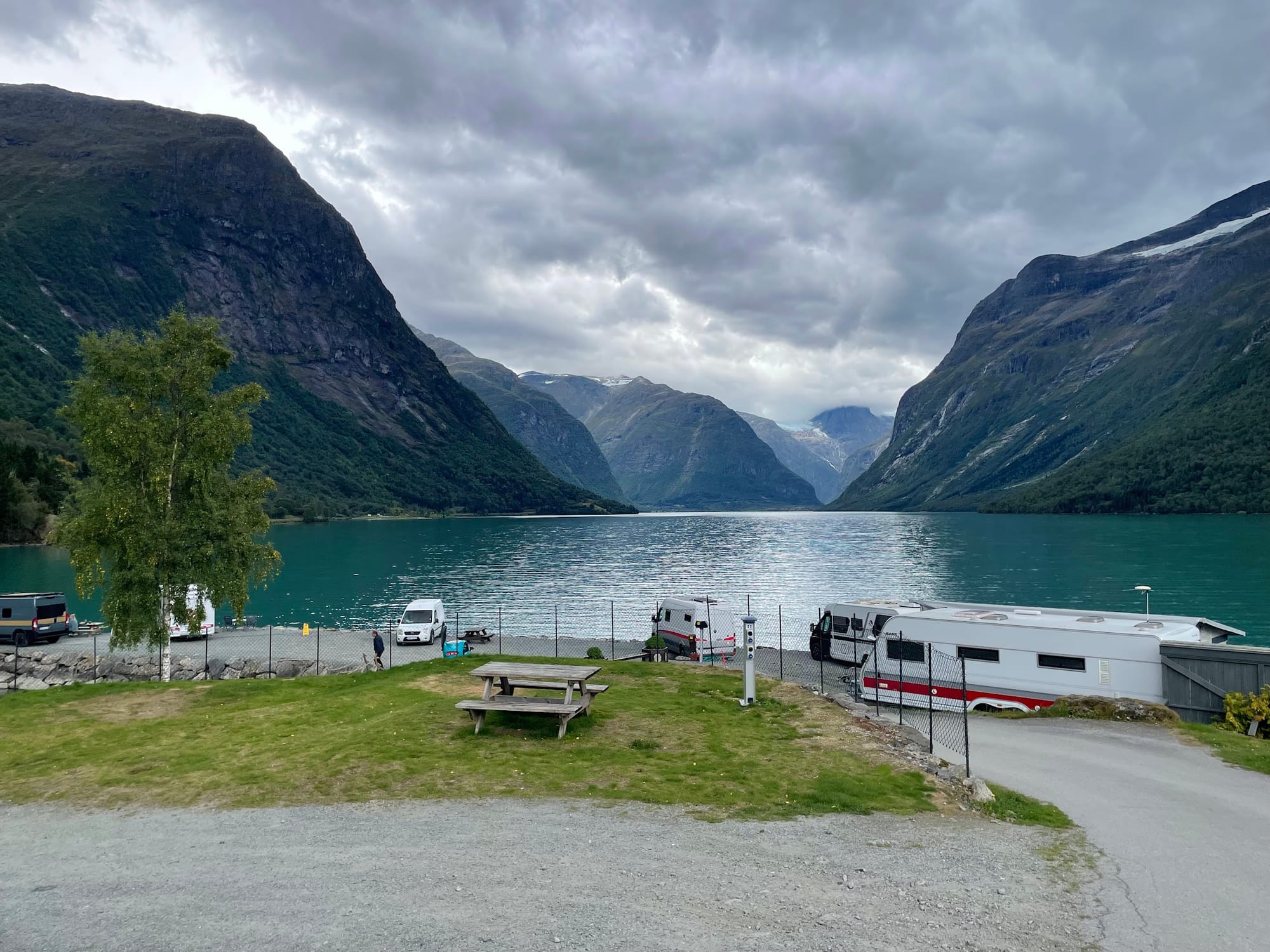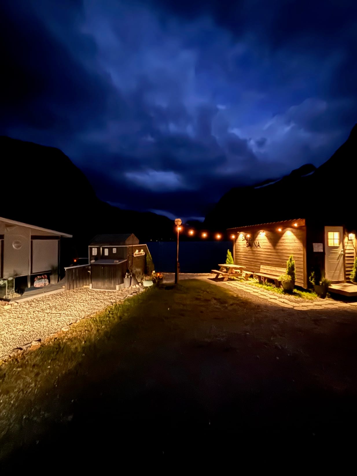 Sonra Lovatnet gölü kenarında kalacak yer bakmaya başladık ama her yere “No Camping” tabelası asmışlardı. Hava iyice kararmıştı, biz de yorulmuştuk. Kaçınılmaz son belliydi, ücretli bir park alanı bulacaktık. Sonunda Sande Camping’te kalmaya karar verdik. 425 NOK ödedik.