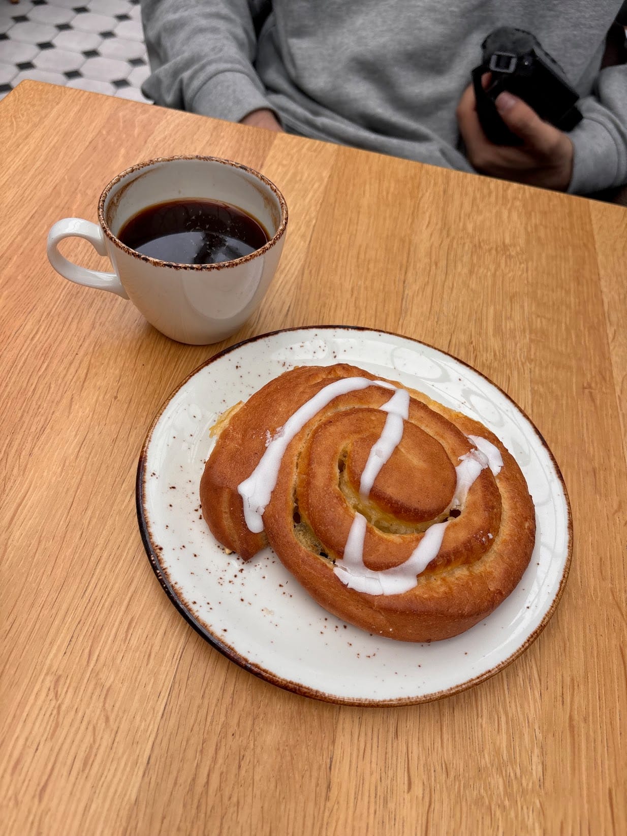 Ardından Helenemoo’nun önerdiği çörekçiye uğrayalım dedik, istasyon içindeki Bit Union. Ama tabii saat geç olmuştu, biz de gidip bayat bayat 54 NOK’a cinnamon roll aldık. Tatlı olmayan bir pişmanlık diyelim. 😅