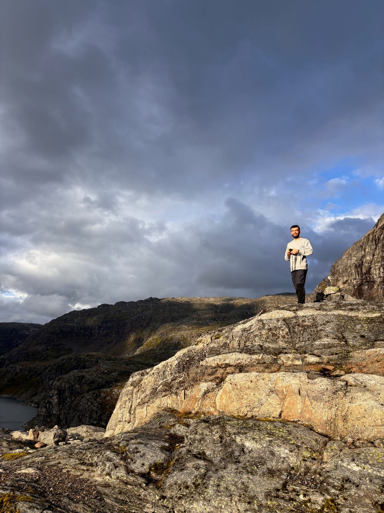 Sonra scenic road olan Hyttehaugen (Viewpoint)'a doğru gittik, ardından ise öyle bir manzarada durduk ki— gerçekten muhteşemdi, resmen doğanın ortasında muhteşem sessizlik.
