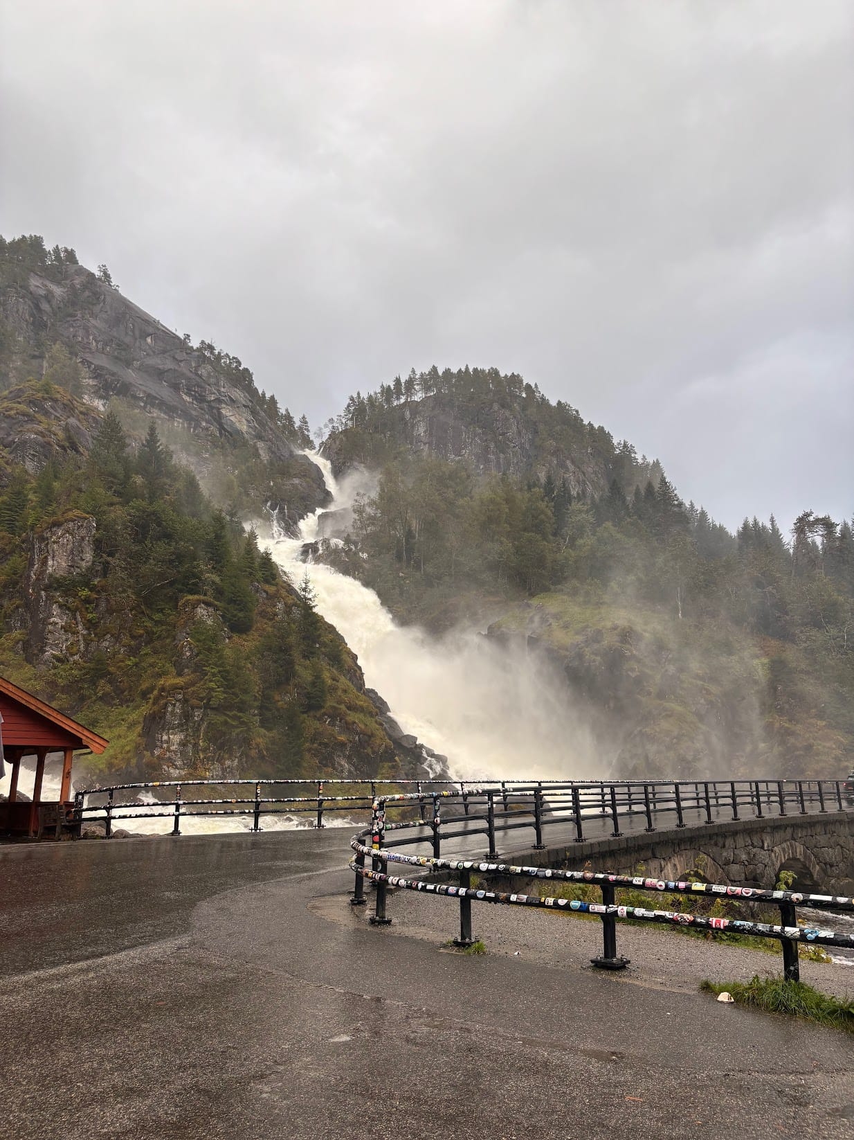 Dönüşte, daha önce geçtiğimiz o Latefoss'u bir kez daha görüyoruz. Ama bu sefer… çılgınlar gibi akıyor! 💦