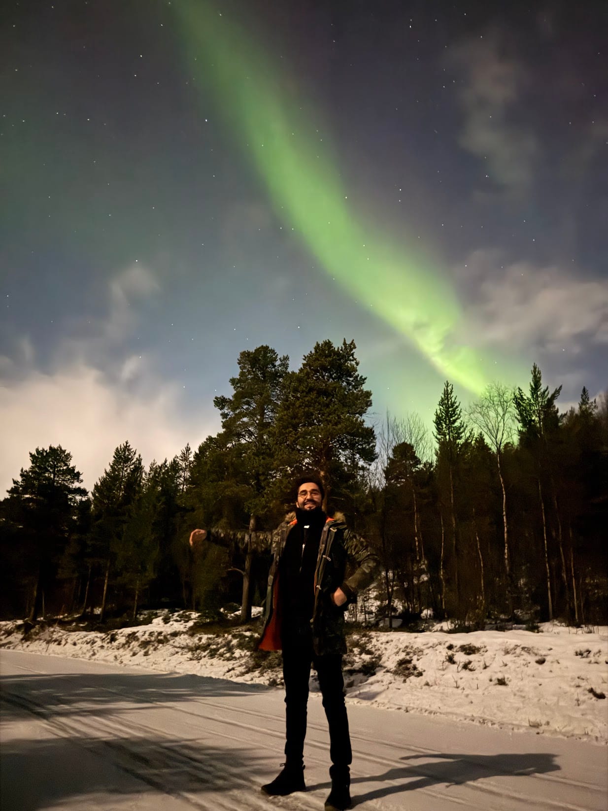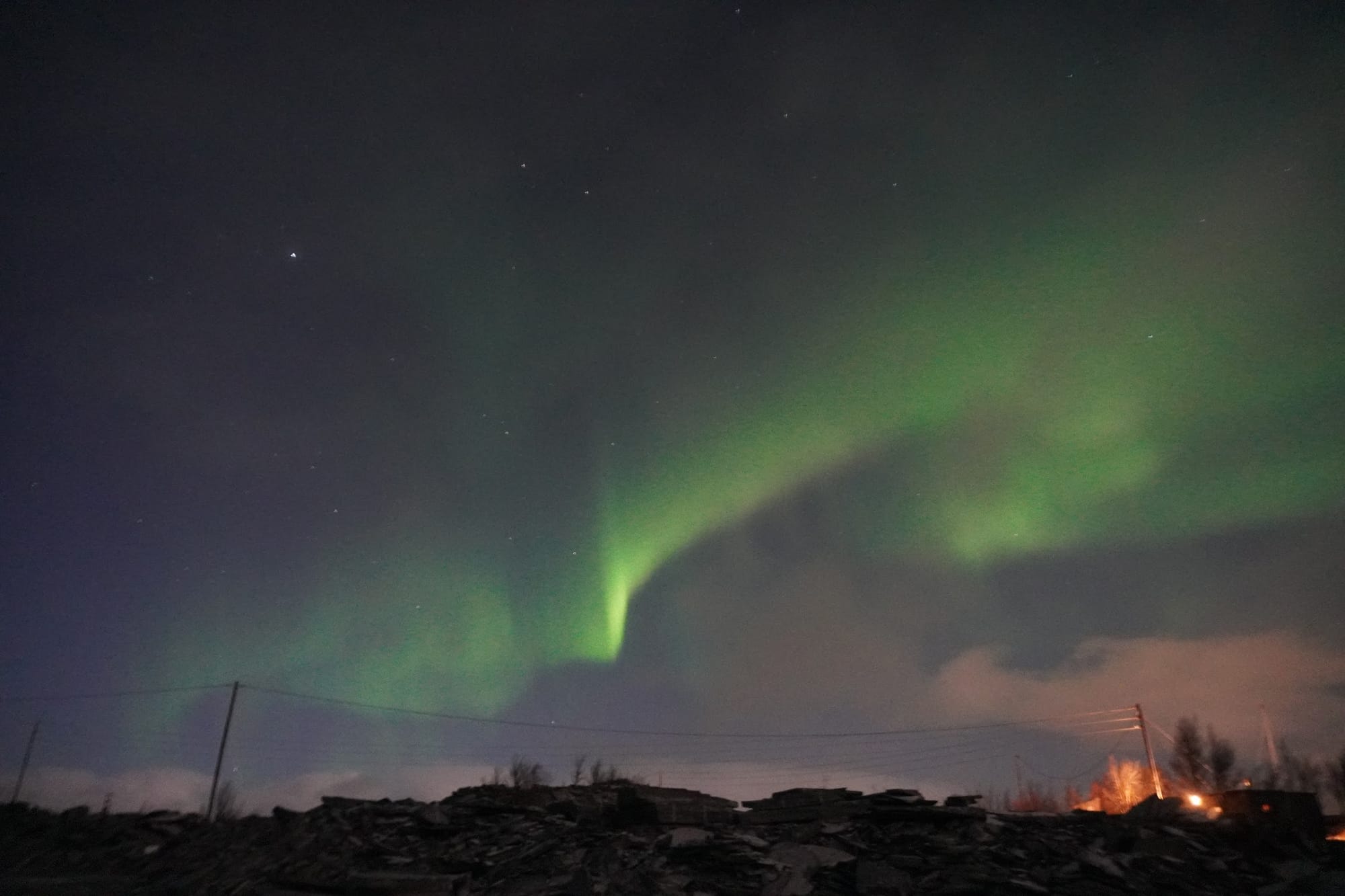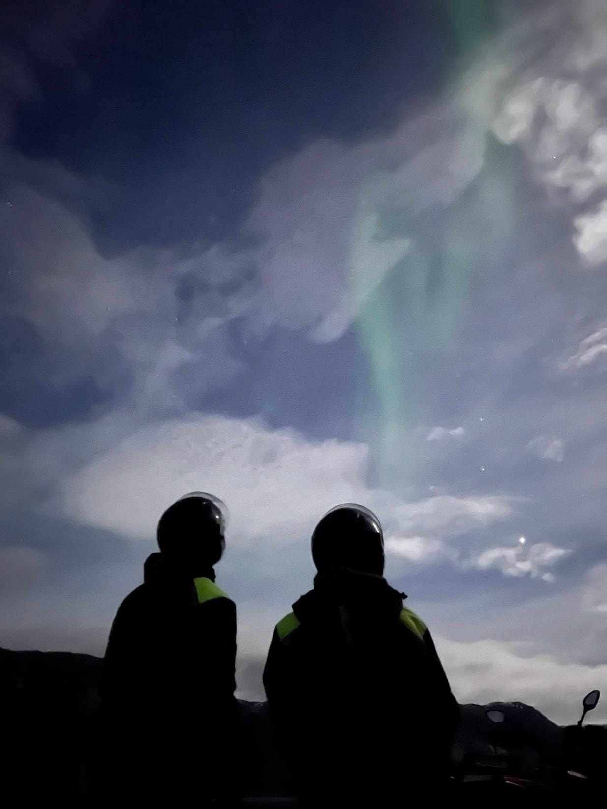 Üç farklı noktada durup, Kuzey Işıkları’nın keyfini çıkarıyoruz (Konumlardan birini buraya ekliyorum - KONUM). Hem çok etkileniyoruz hem de Oscar, bize Ocak ayında çektiği bir fotoğrafı gösteriyor. (Aşağıya da ekliyorum o fotoğrafı.)