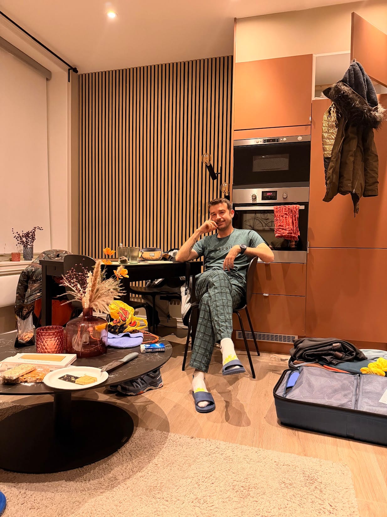 Bir odada çift kişilik yatak, diğerinde tek kişilik yatak vardı; salondaki kanepe de açılınca iki kişilik yatağa dönüşüyordu. Yani toplamda tam ihtiyacımız olan alanı sağlıyordu. Üstelik şehir merkezine de yalnızca 1.1 km uzaklıktaydı.