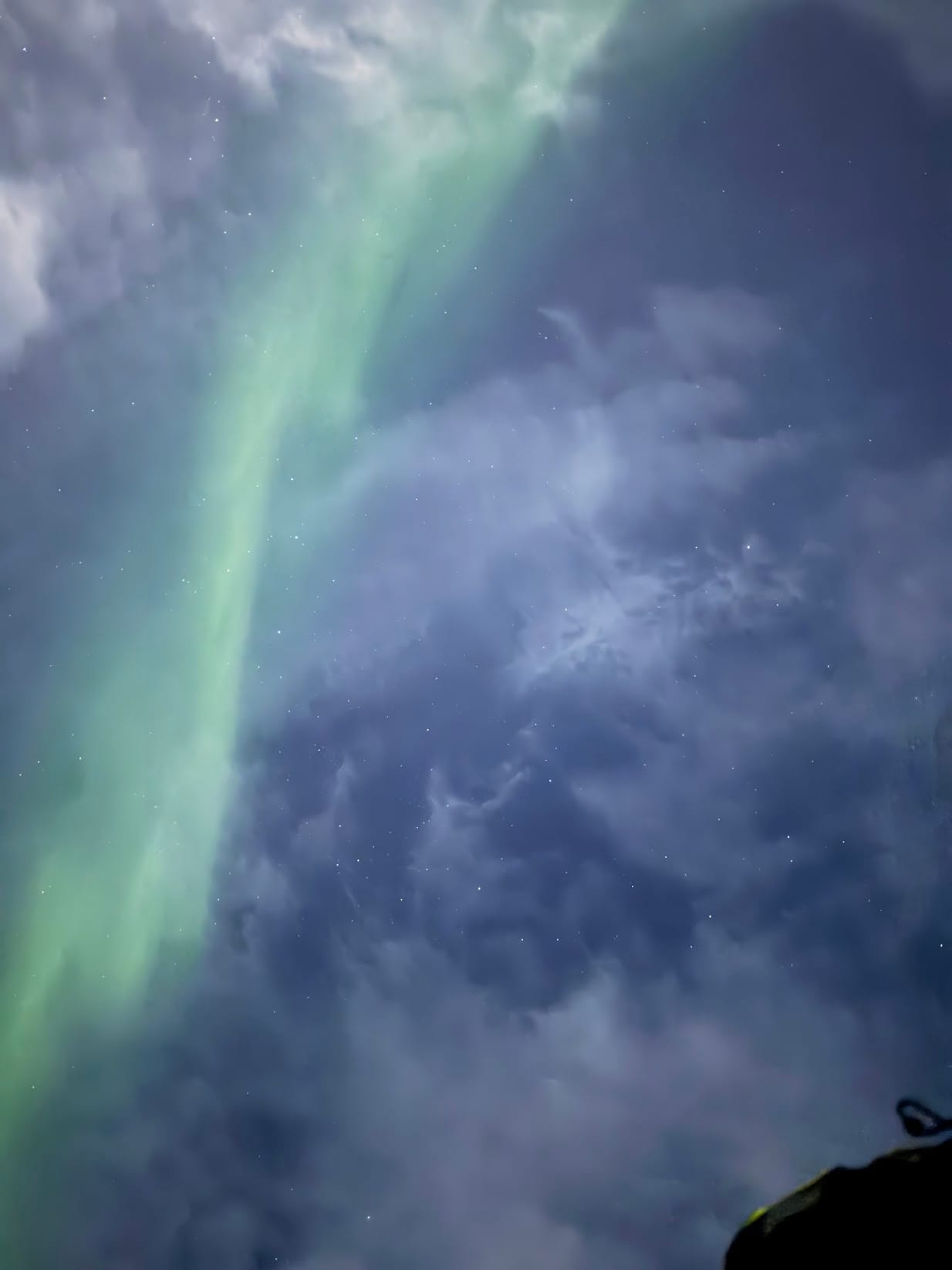 Kuzey Işıkları’nı görme ihtimalimiz sıfırdı. 🌧️ (Not: bazı uygulamalar mevcut. Mesela Aurora. Lokasyona göre görme yüzde ihtimalini söylüyor ama biz çok verimli kullanamadık, denemek isterseniz uygulamanın linki: Aurora)